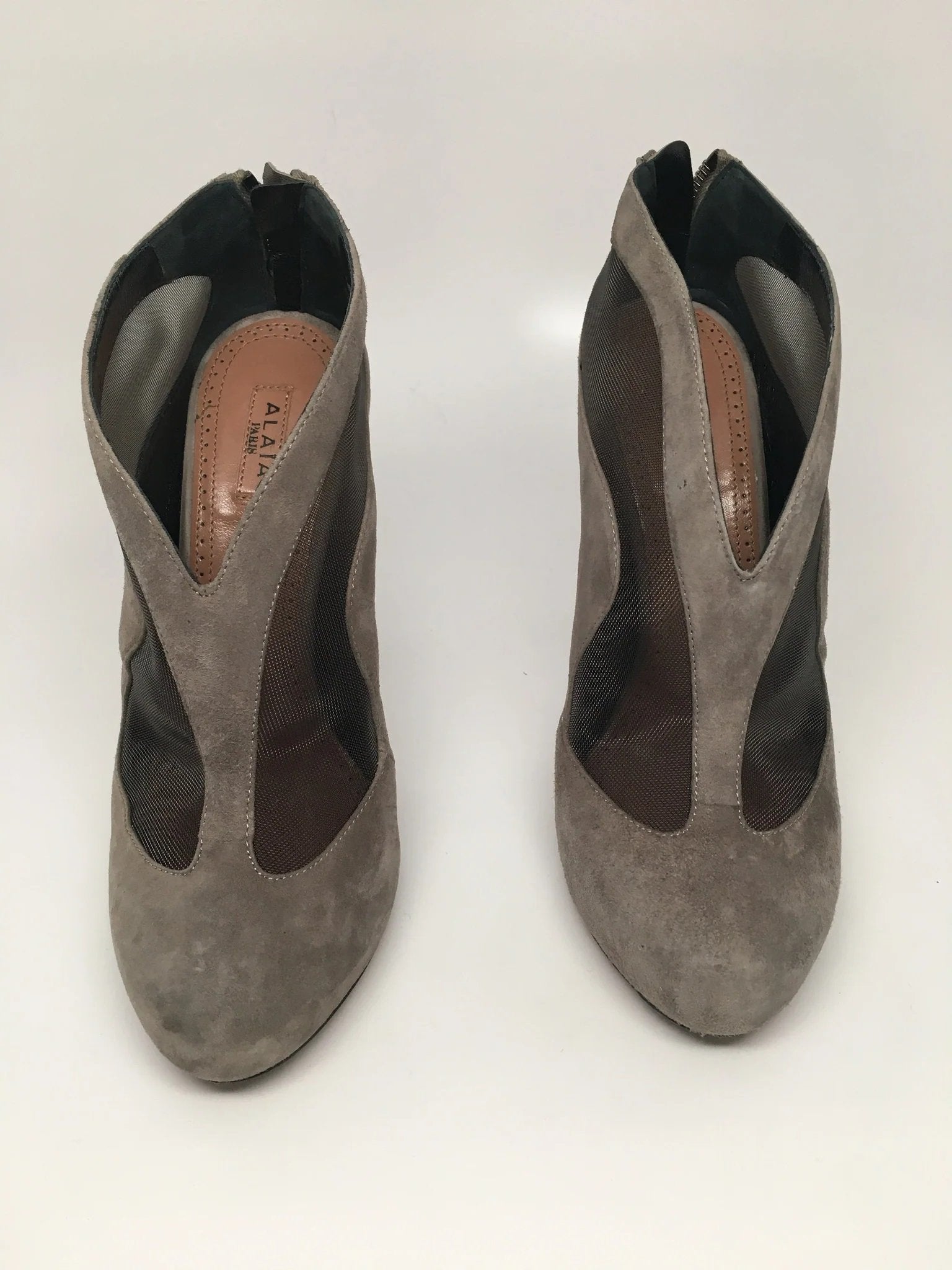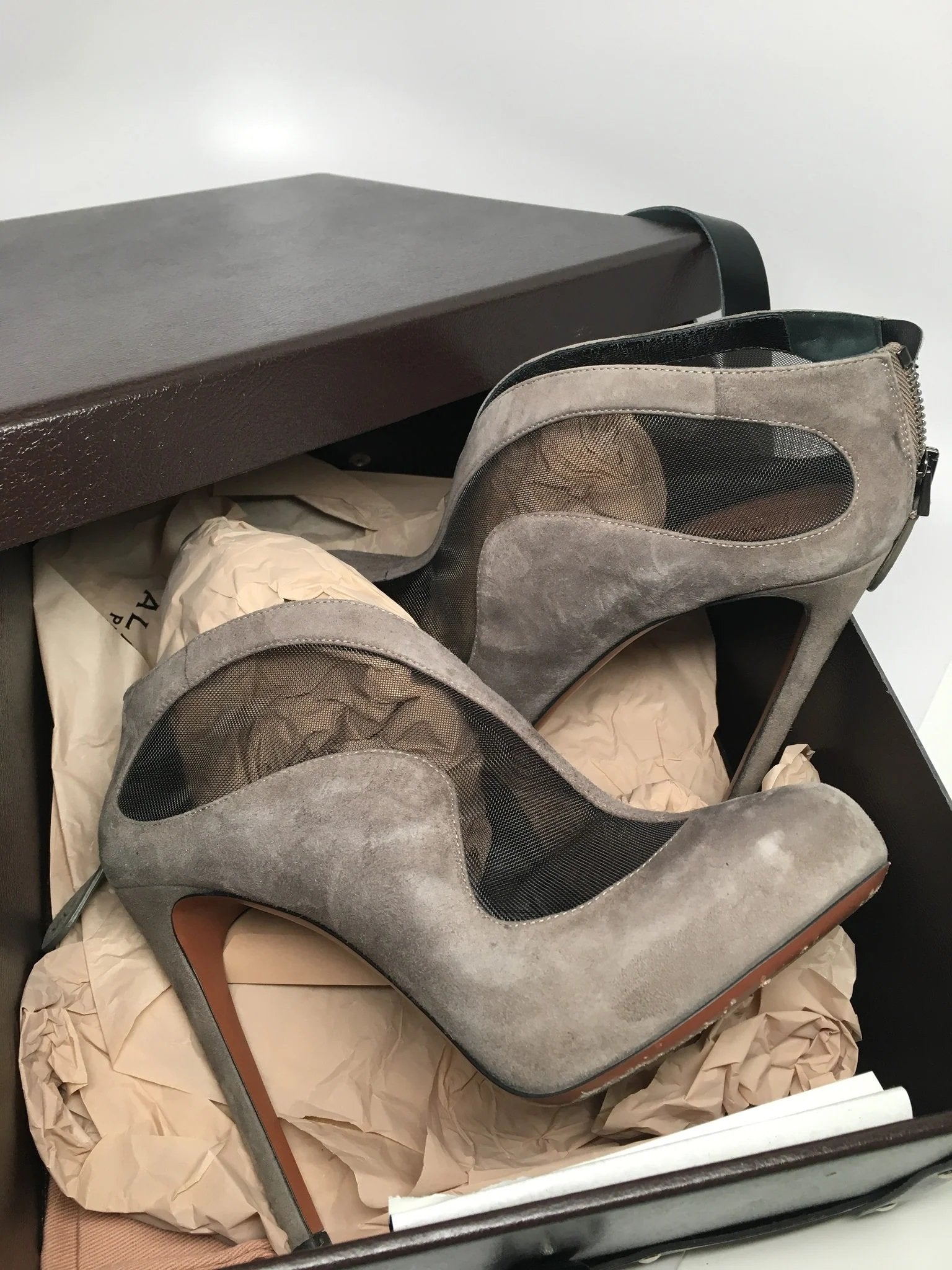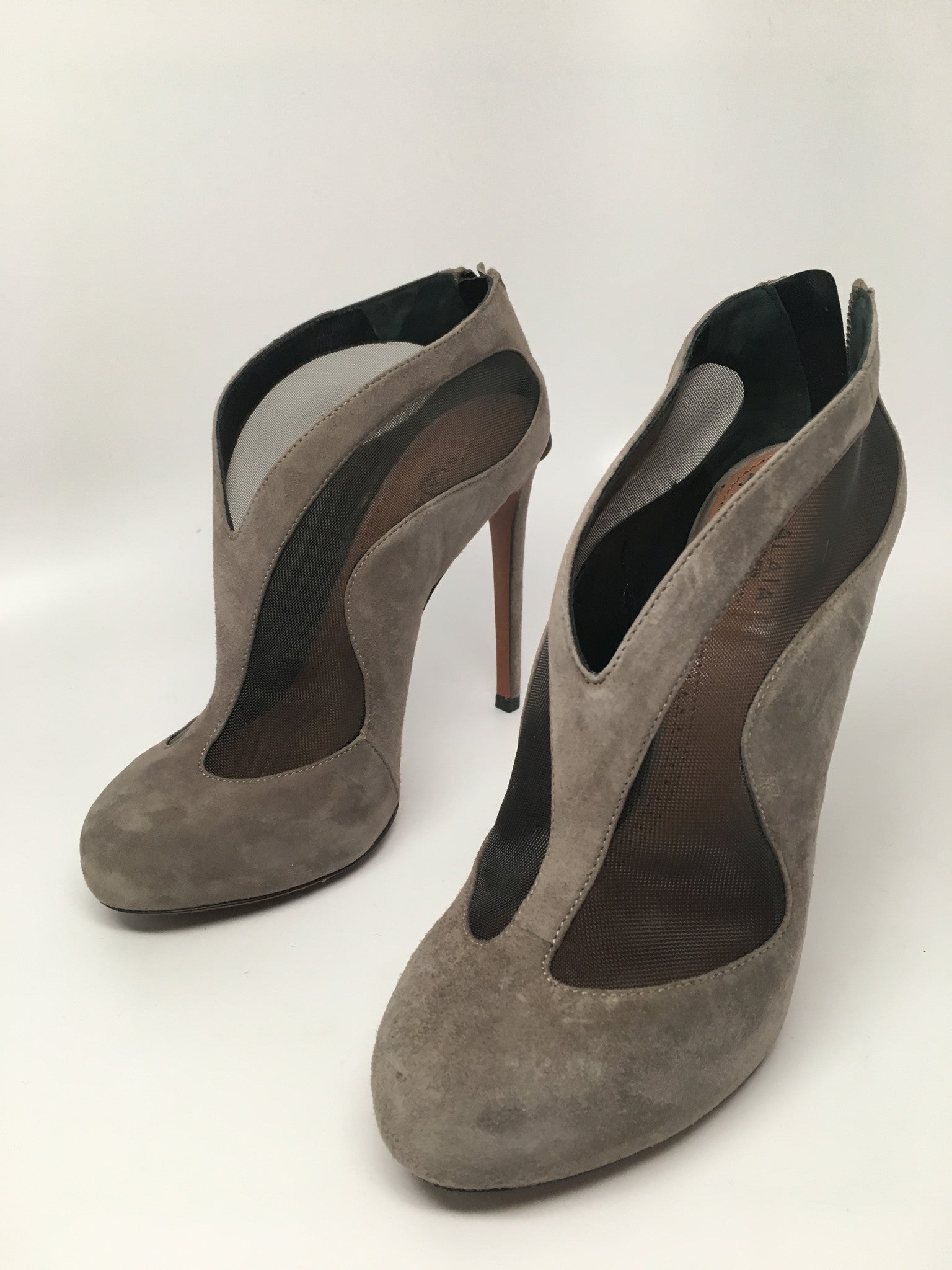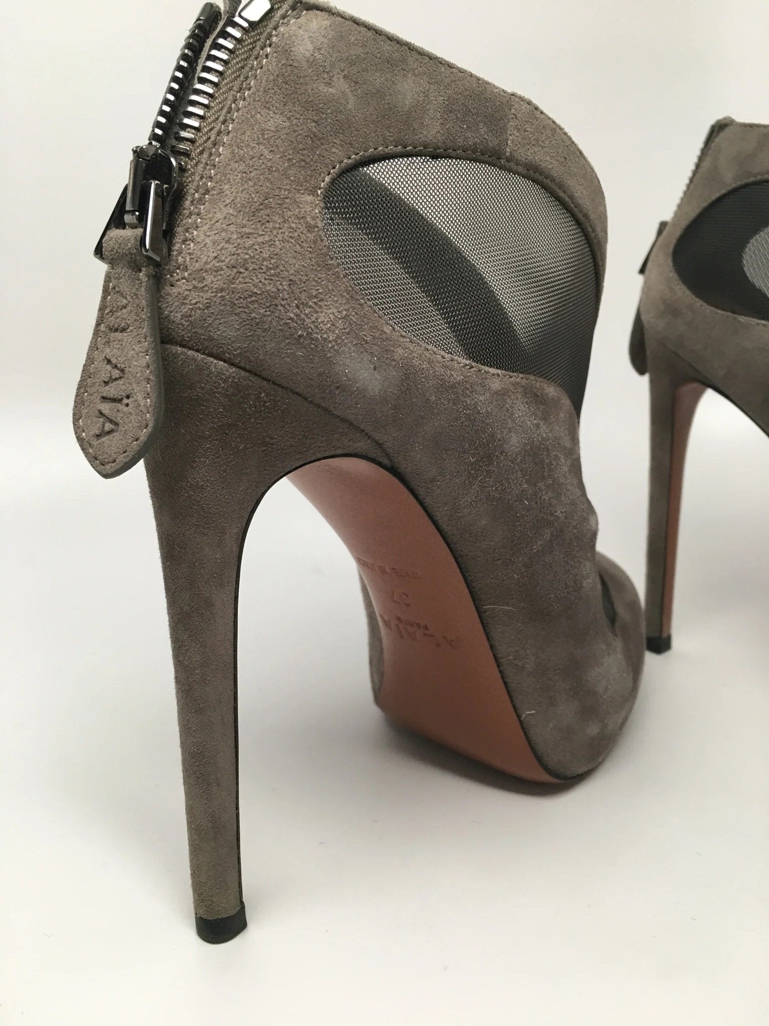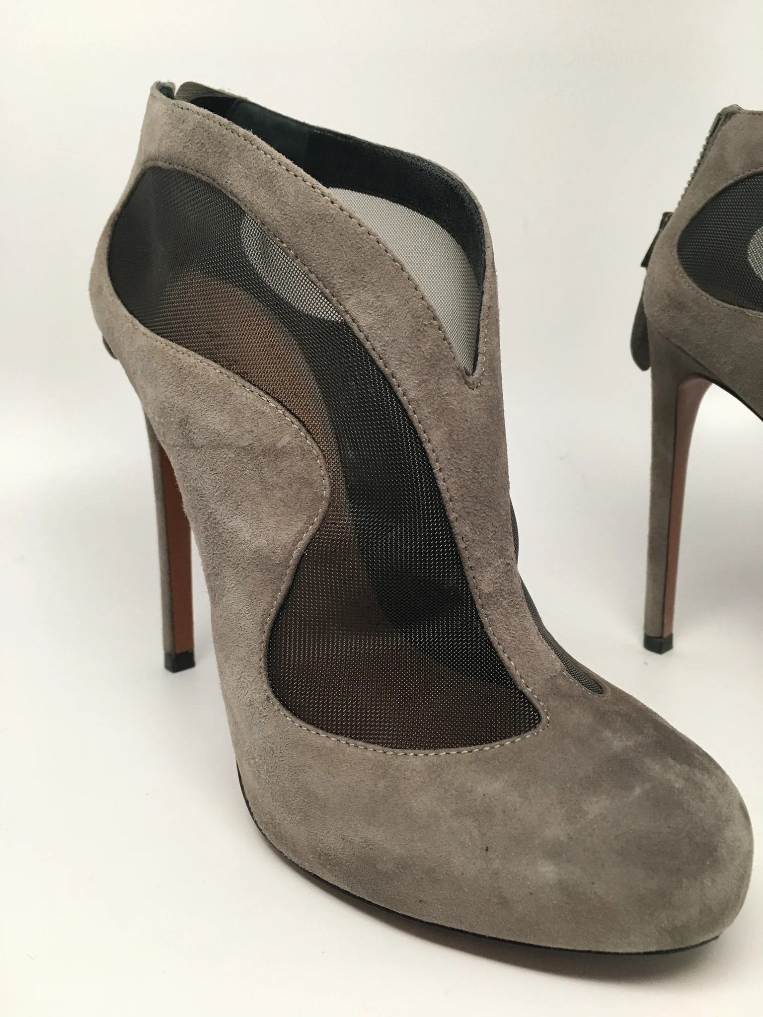 ALAIA PARIS CHAMOIS STILETTO ANKLE BOOTIES - SIZE 37