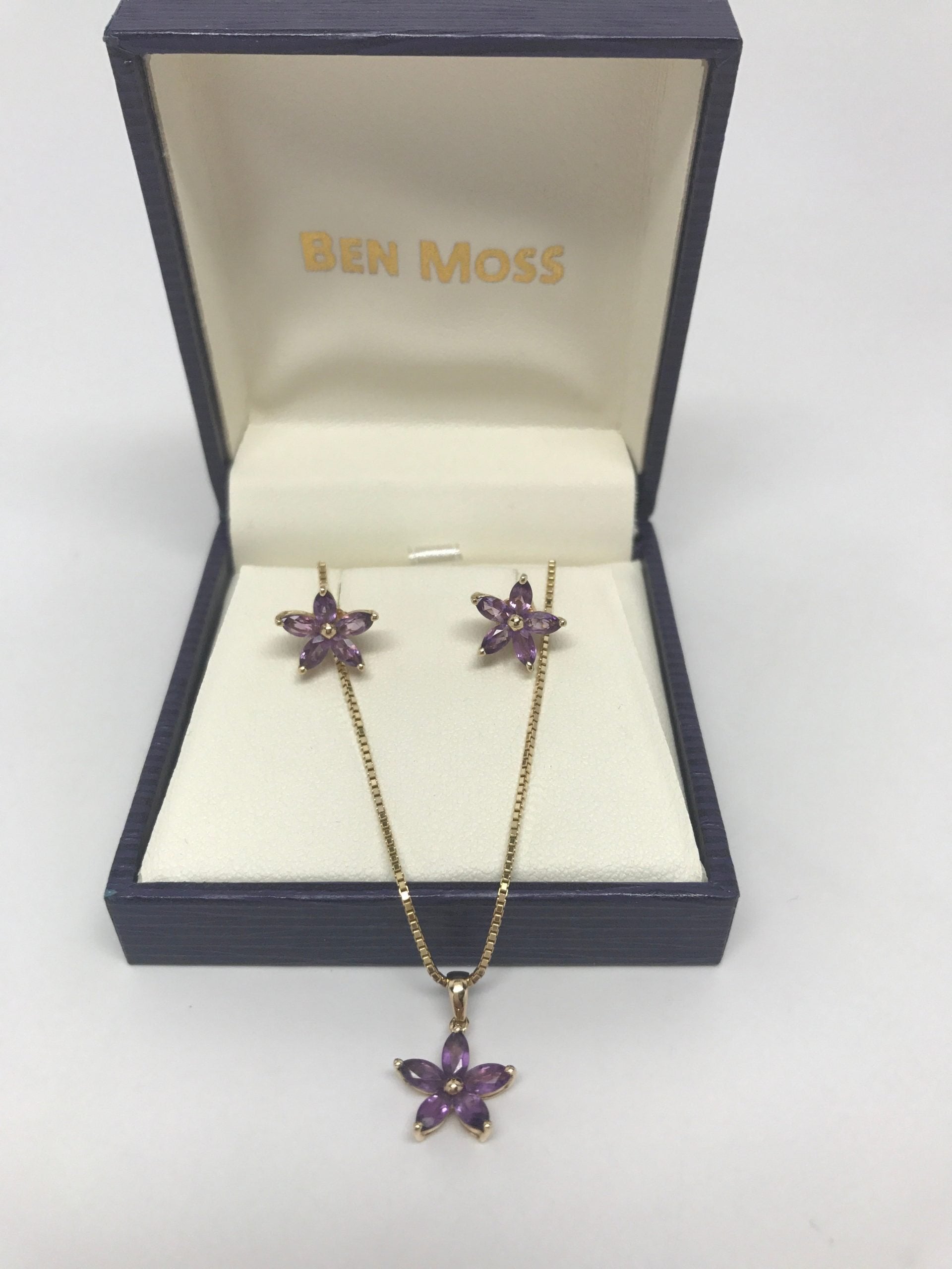 BEN MOSS YELLOW GOLD AMETHYST STUD EARRINGS & NECKLACE SET