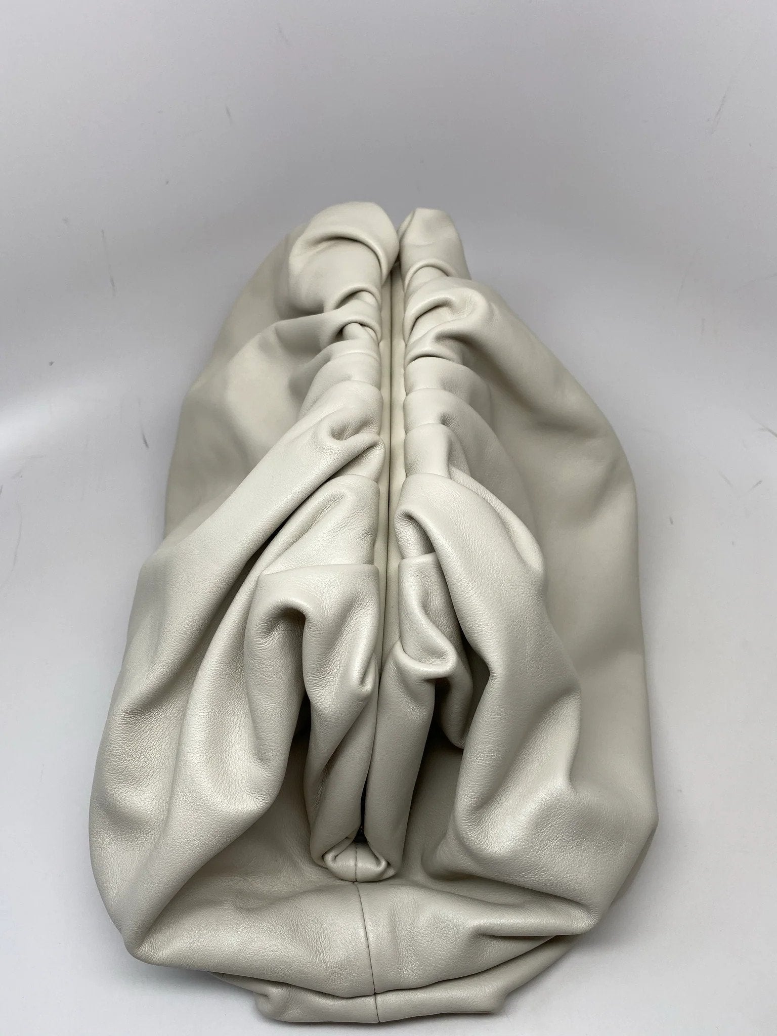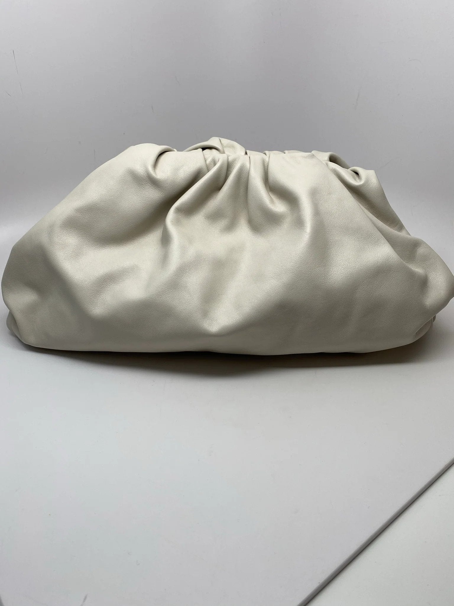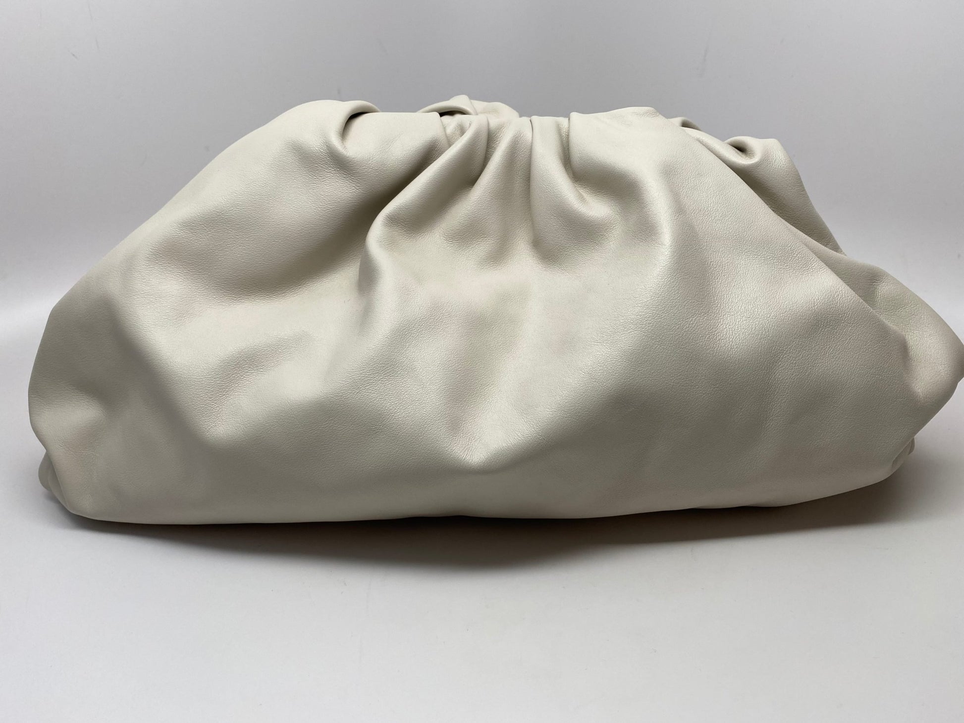 Popular oversized clutch made of smooth butter calfskin that envelope the bag's frame and create a voluminous rounded shape. Spring/summer 2019 collection. This Mist colour pouch is a perfect accessory to add to any outfit, a day out or night out - so versatile and chic! Oversize frame clutch in smooth butter calf Lined in nappa for a clean finish Logo is discreetly embossed inside