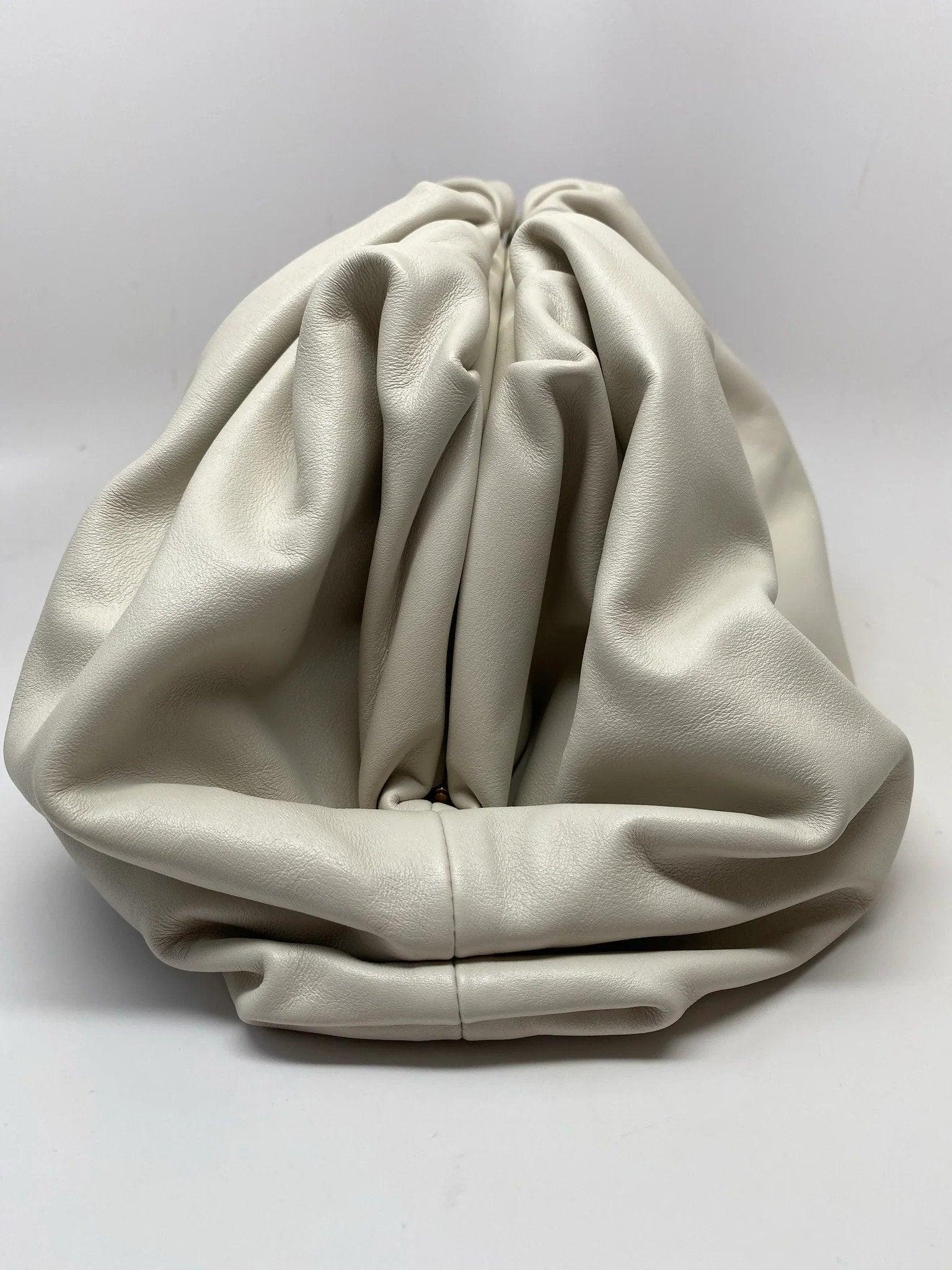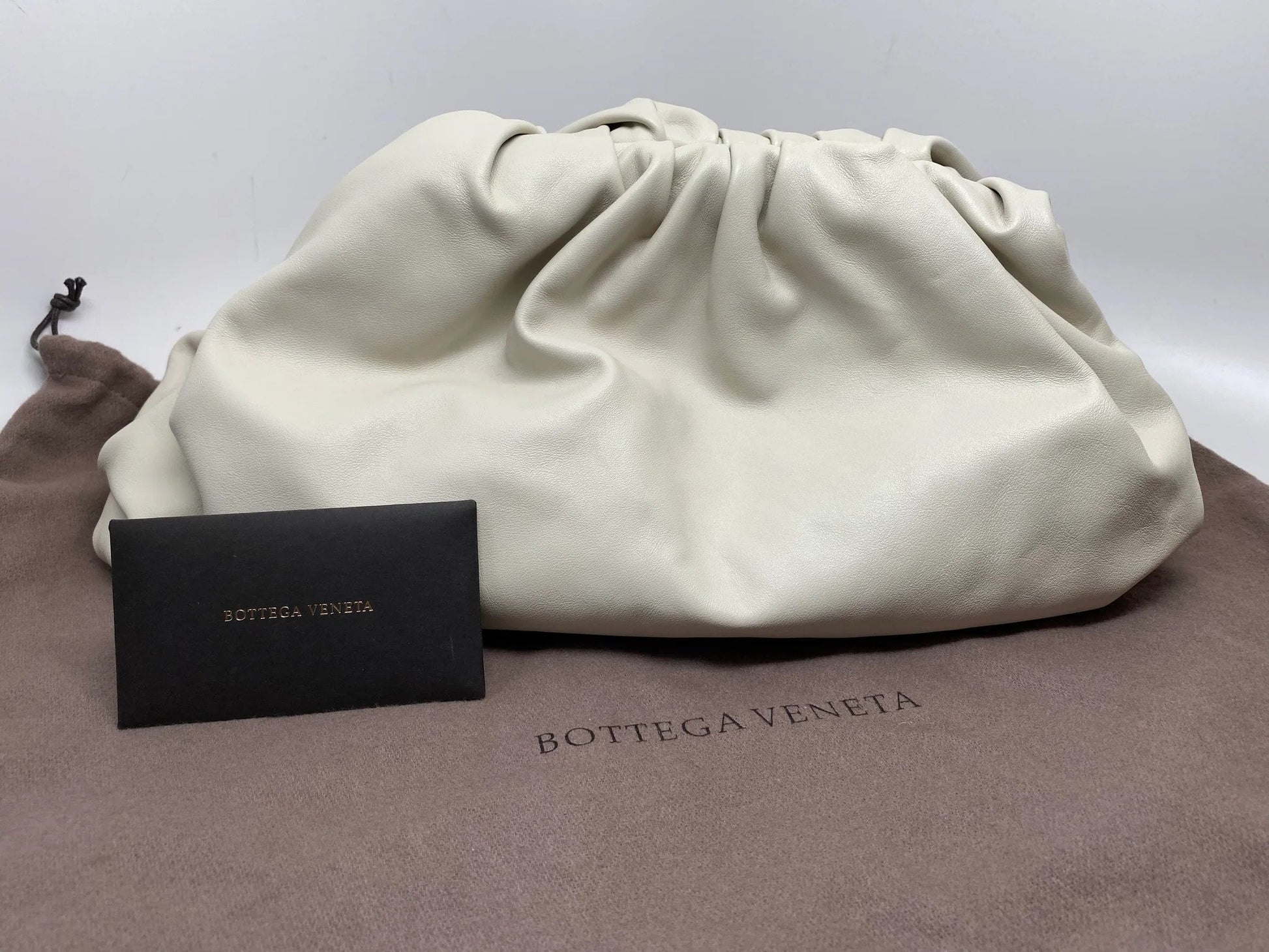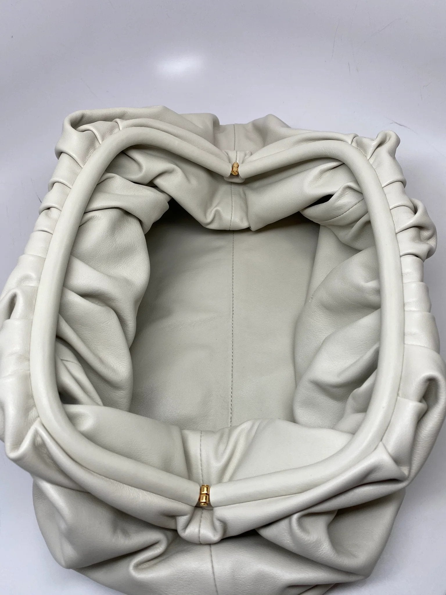 Popular oversized clutch made of smooth butter calfskin that envelope the bag's frame and create a voluminous rounded shape. Spring/summer 2019 collection. This Mist colour pouch is a perfect accessory to add to any outfit, a day out or night out - so versatile and chic! Oversize frame clutch in smooth butter calf Lined in nappa for a clean finish Logo is discreetly embossed inside