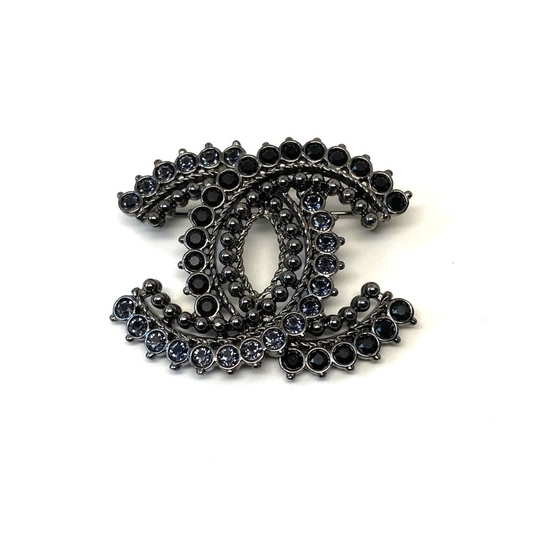 CHANEL BLACK & BLUE GEMSTONE RUTHENIUM CC BROOCH