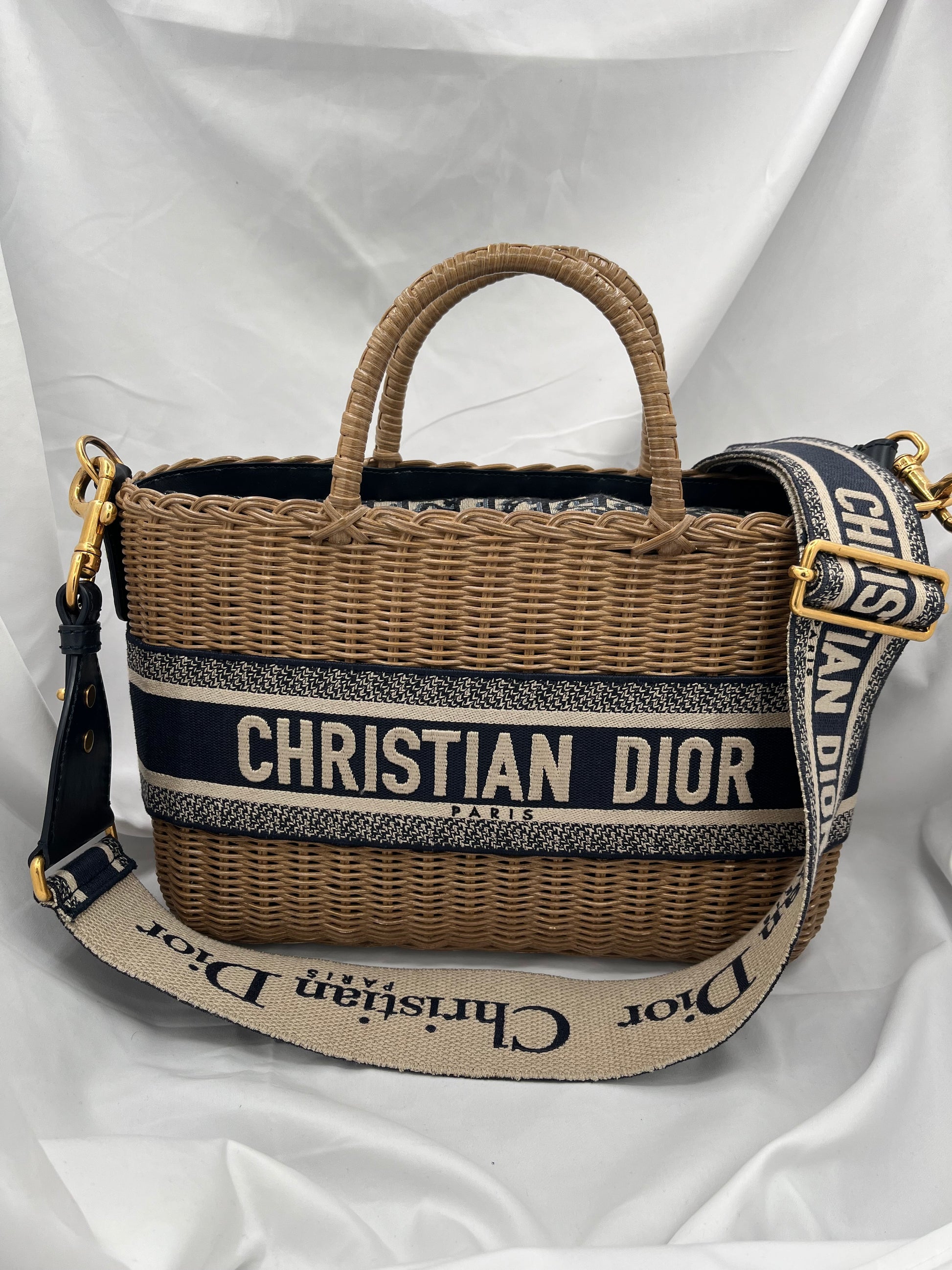Christian Dior Wicker Oblique Basket Bag in Blue