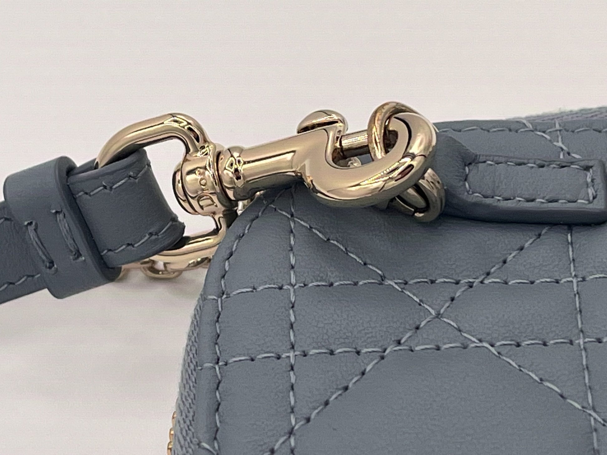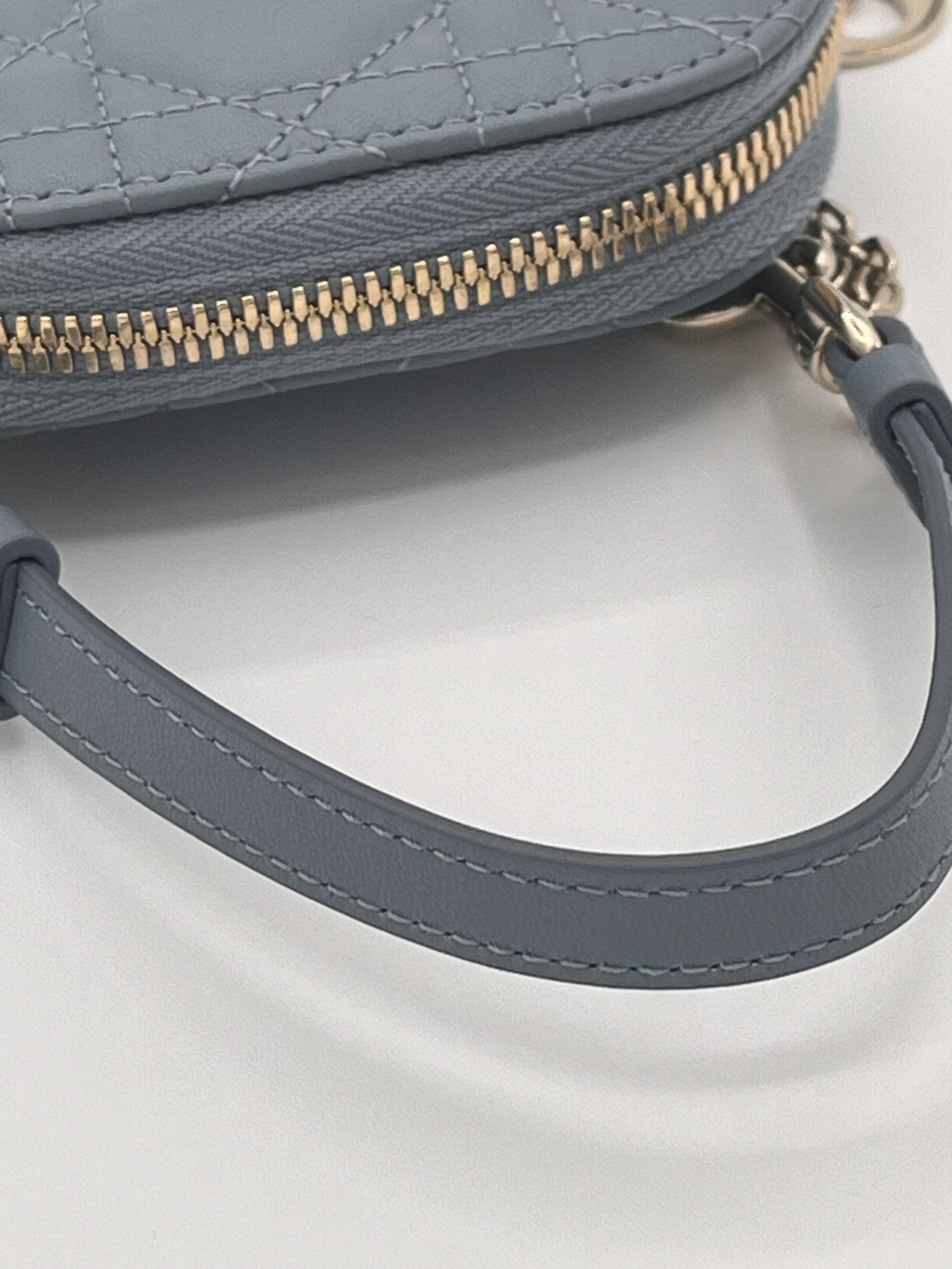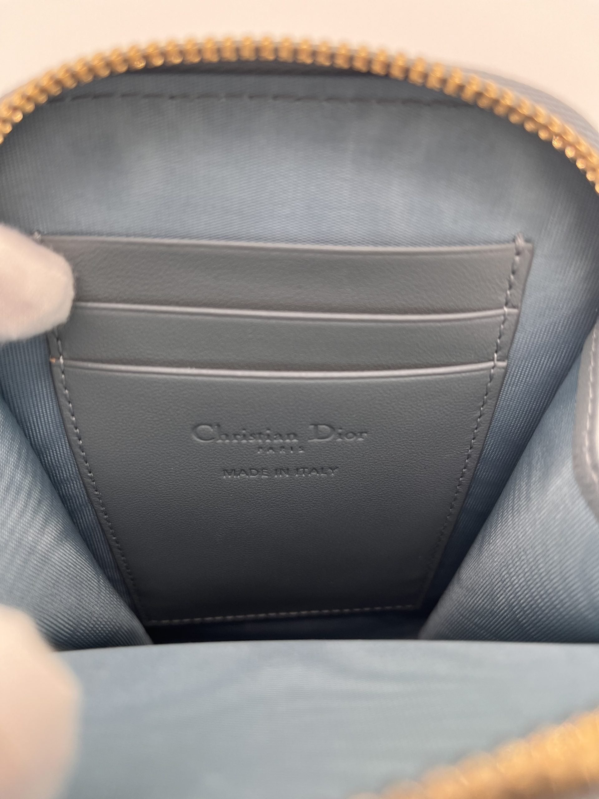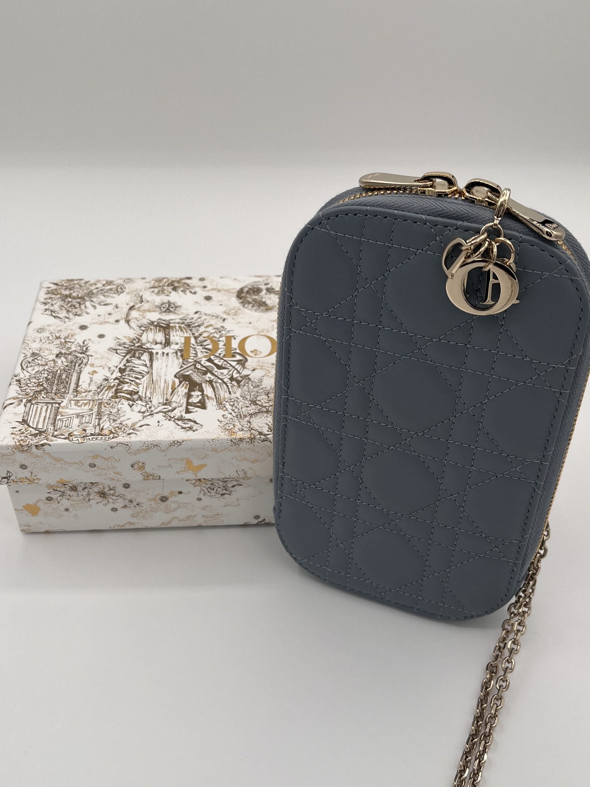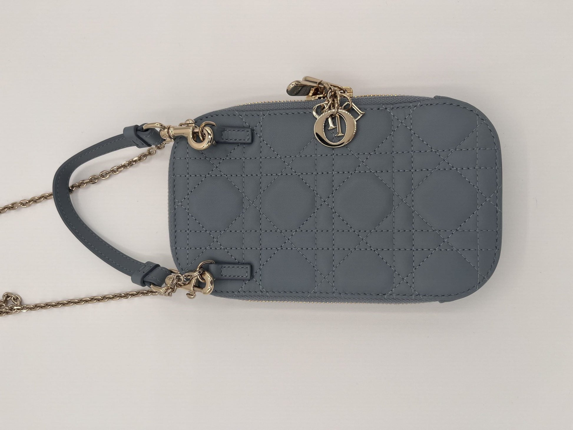 Dior Montaigne Phone Holder with Chain Strap - Blue Calfskin
