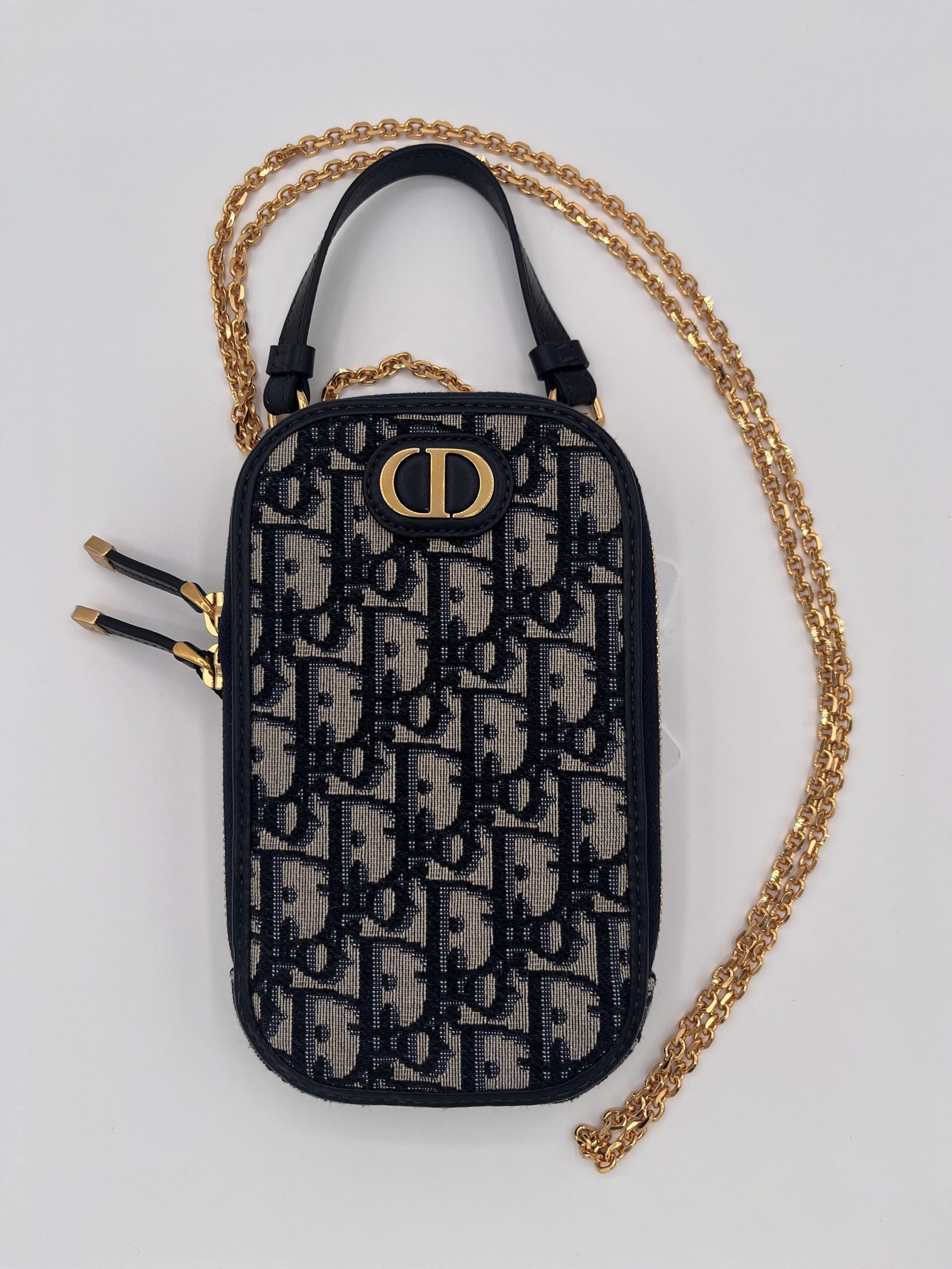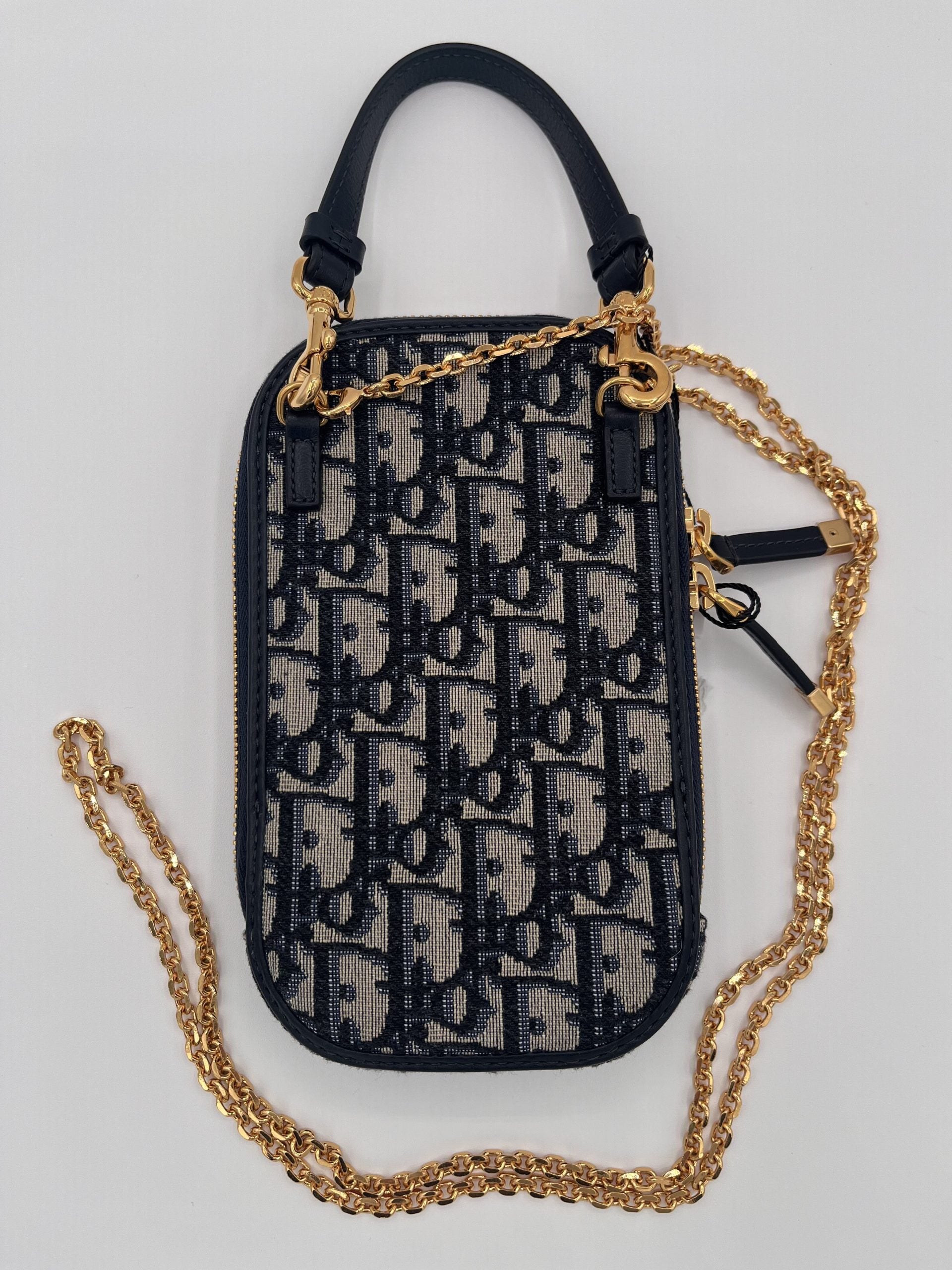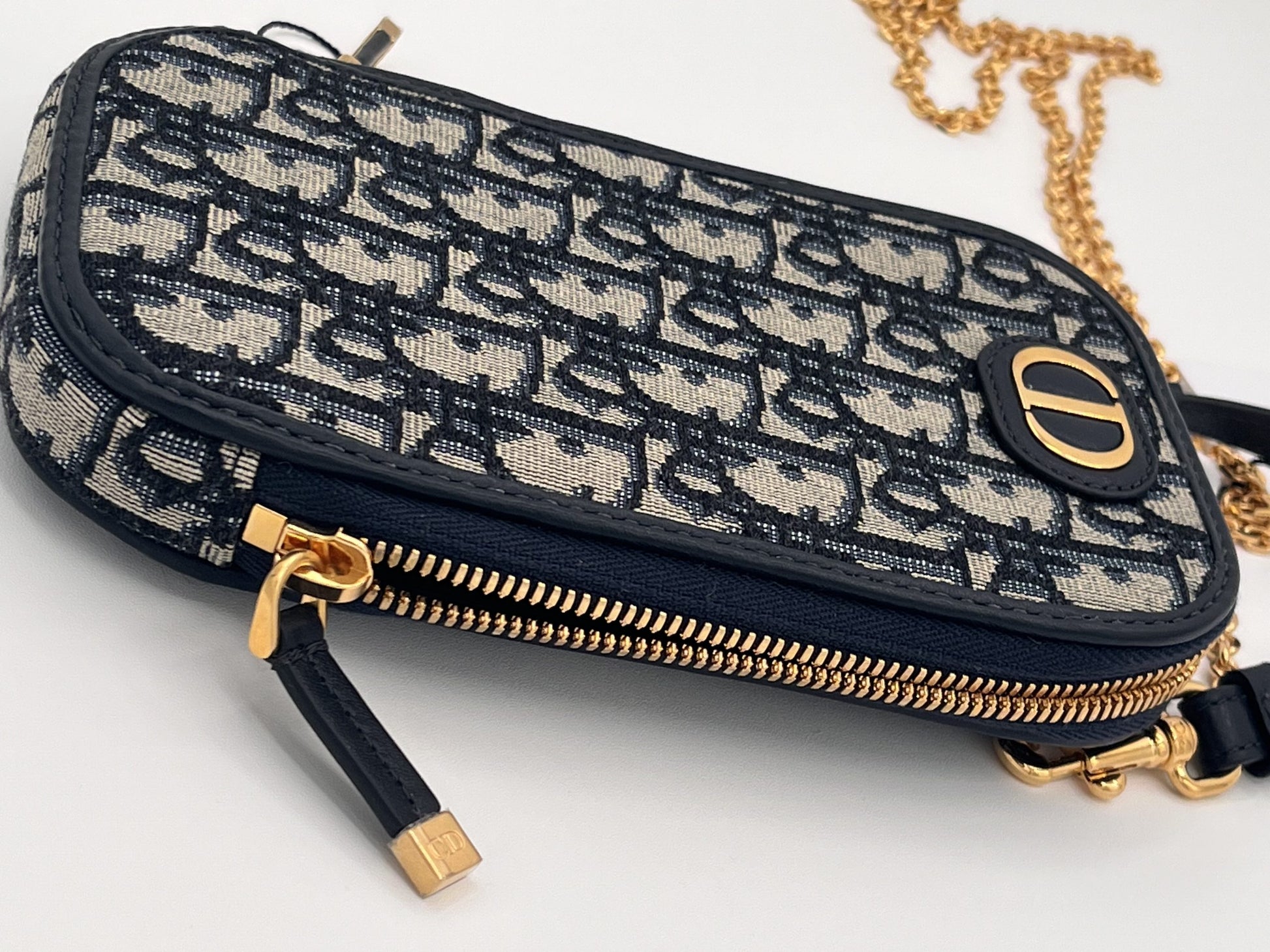 Dior Montaigne Phone Holder with Chain Strap - Blue Oblique Jacquard