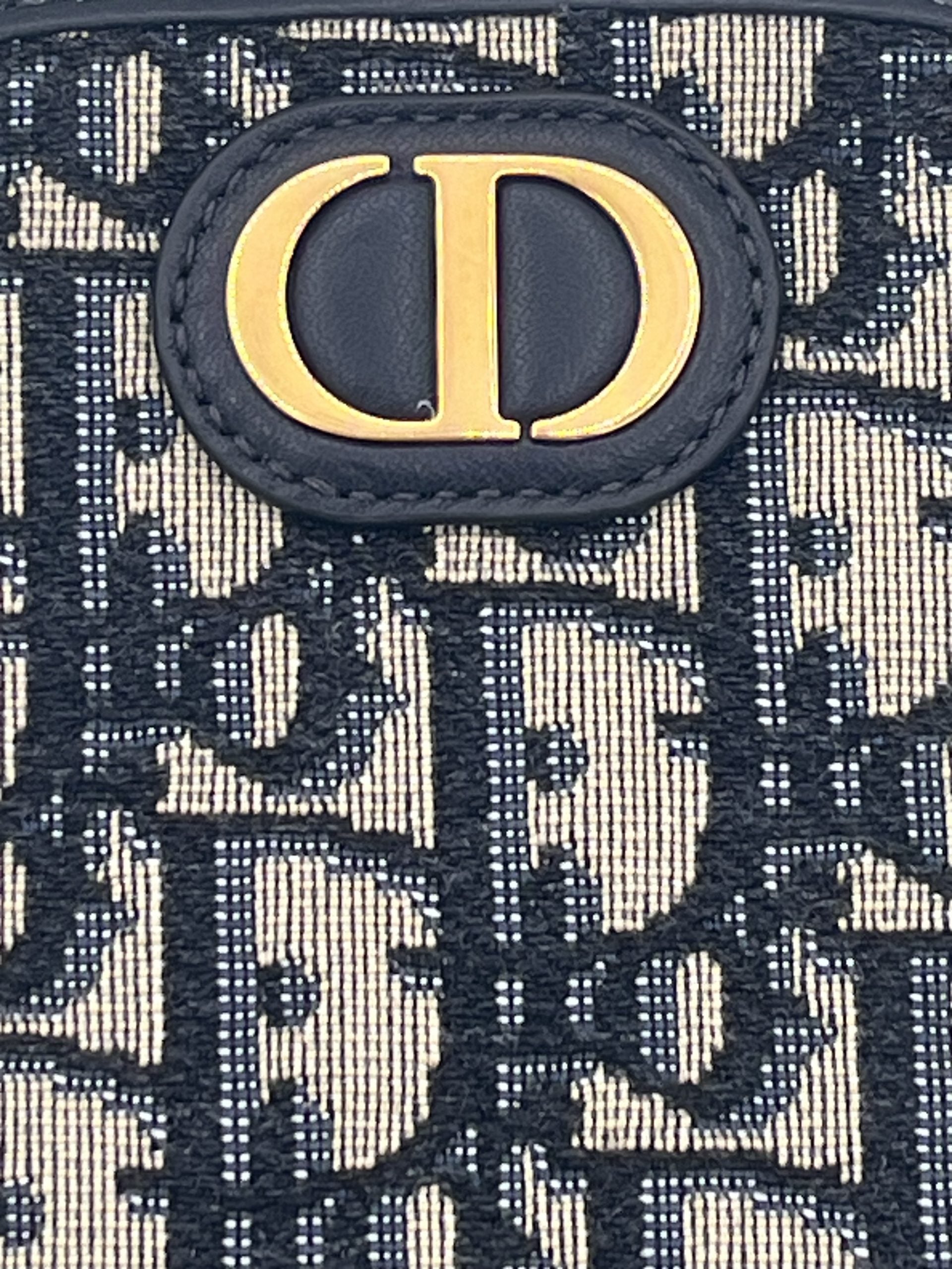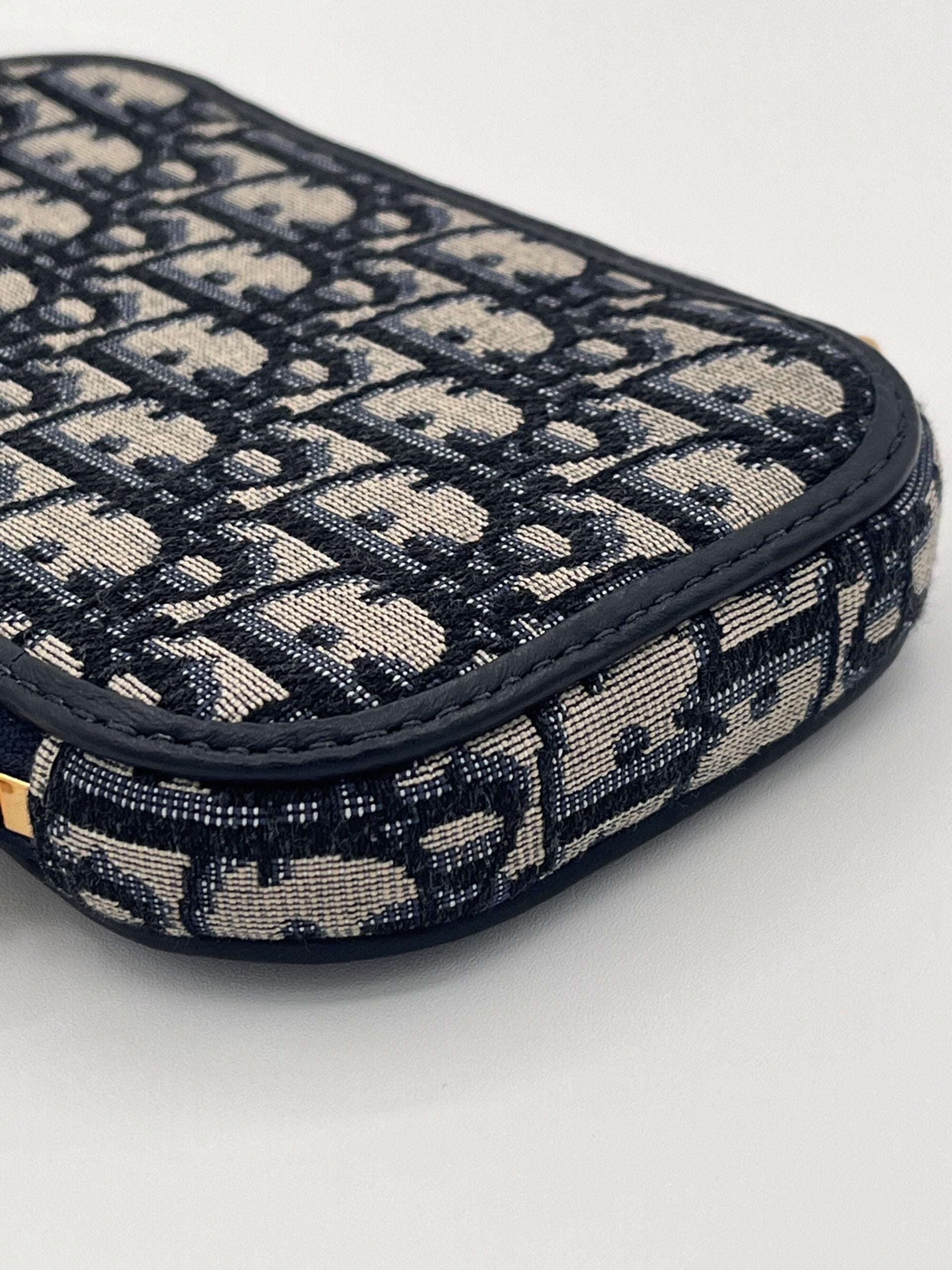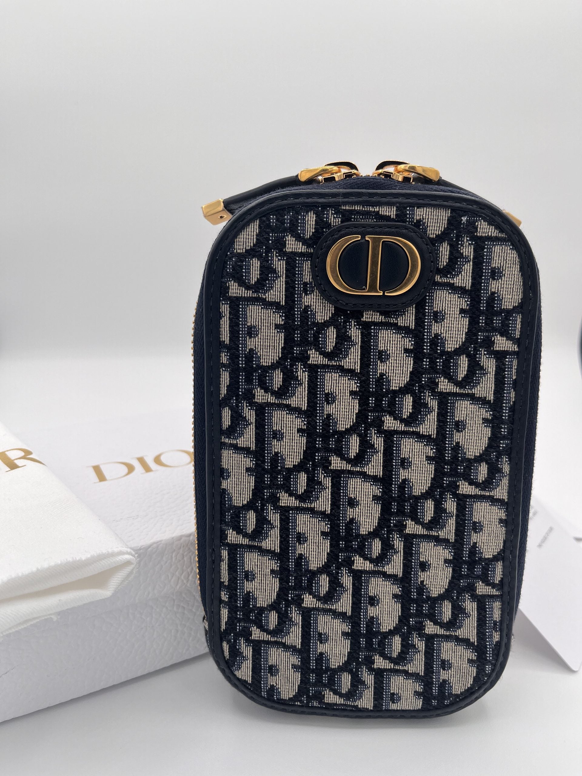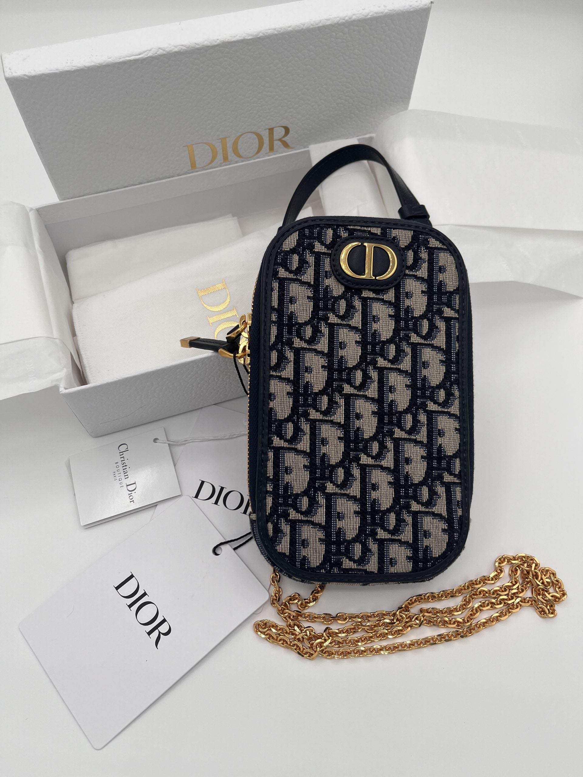 Dior Montaigne Phone Holder with Chain Strap - Blue Oblique Jacquard