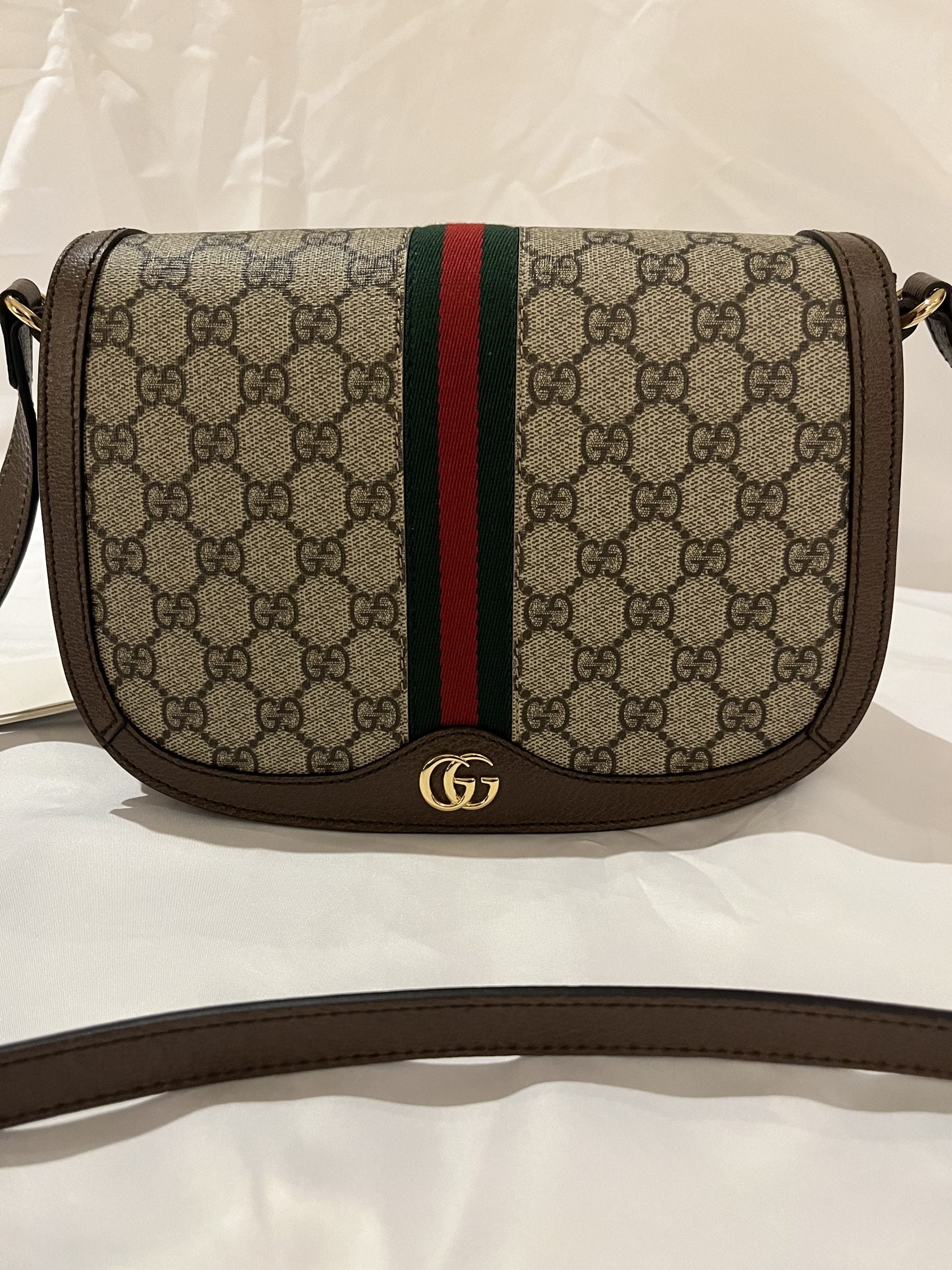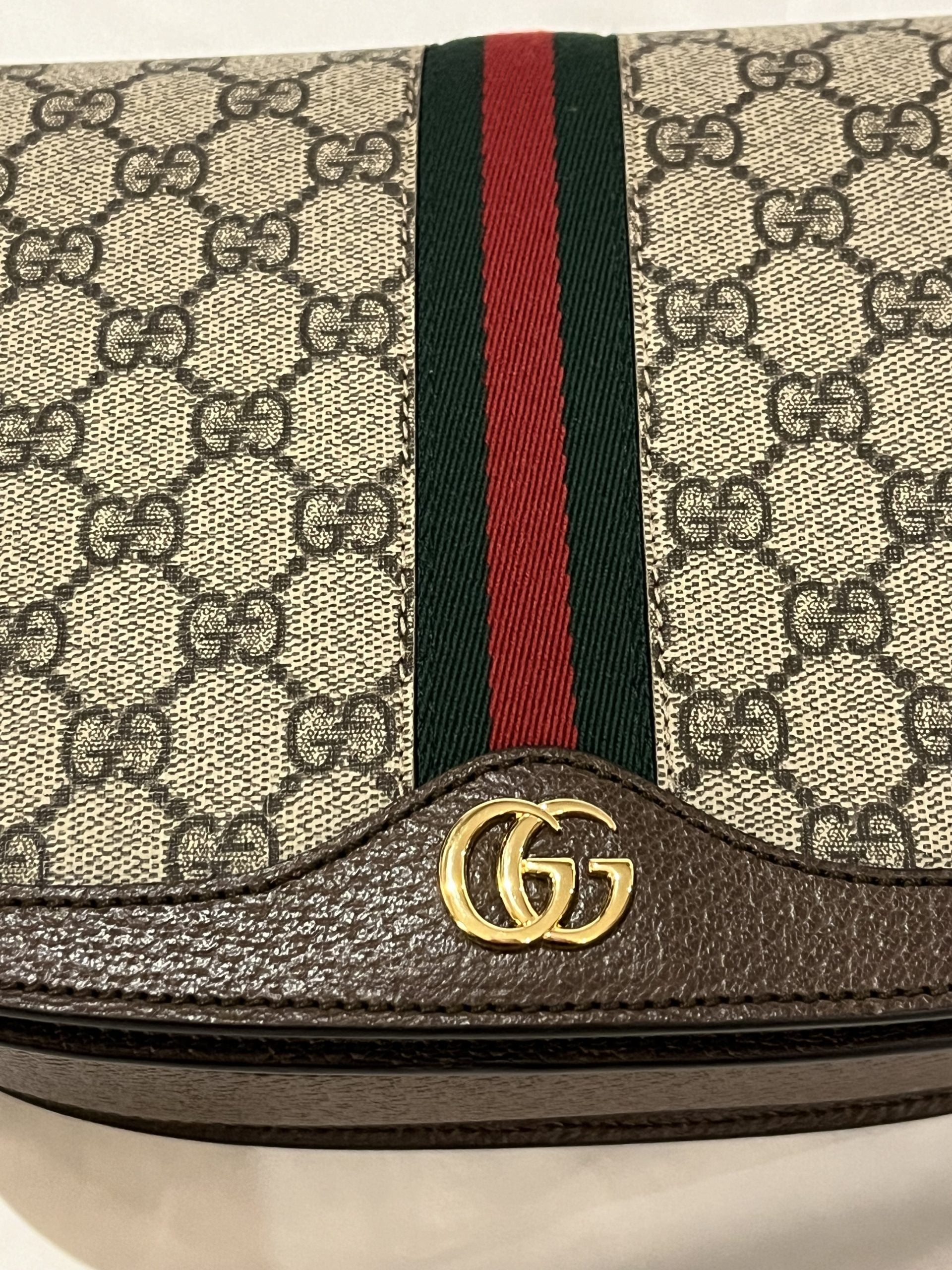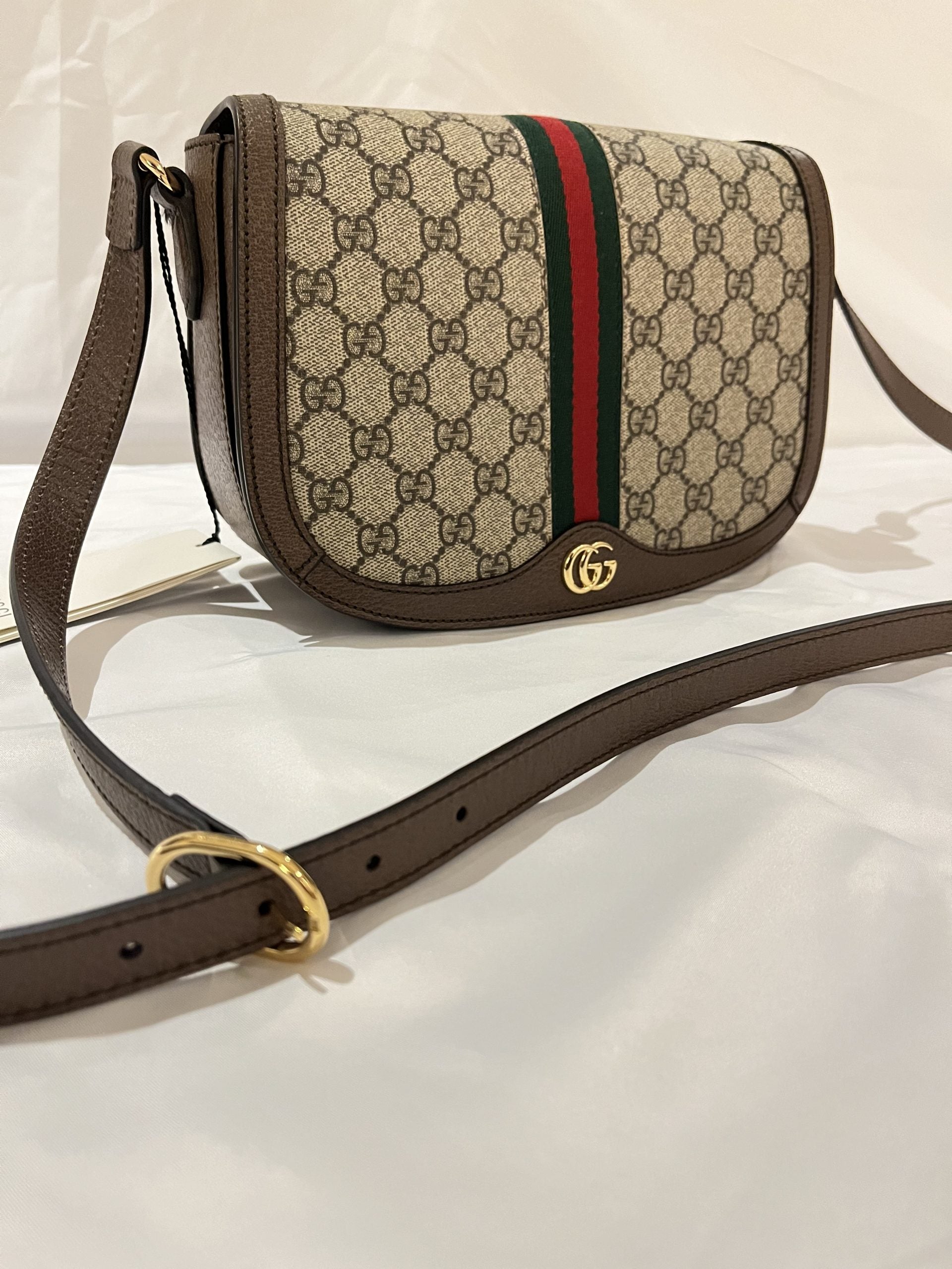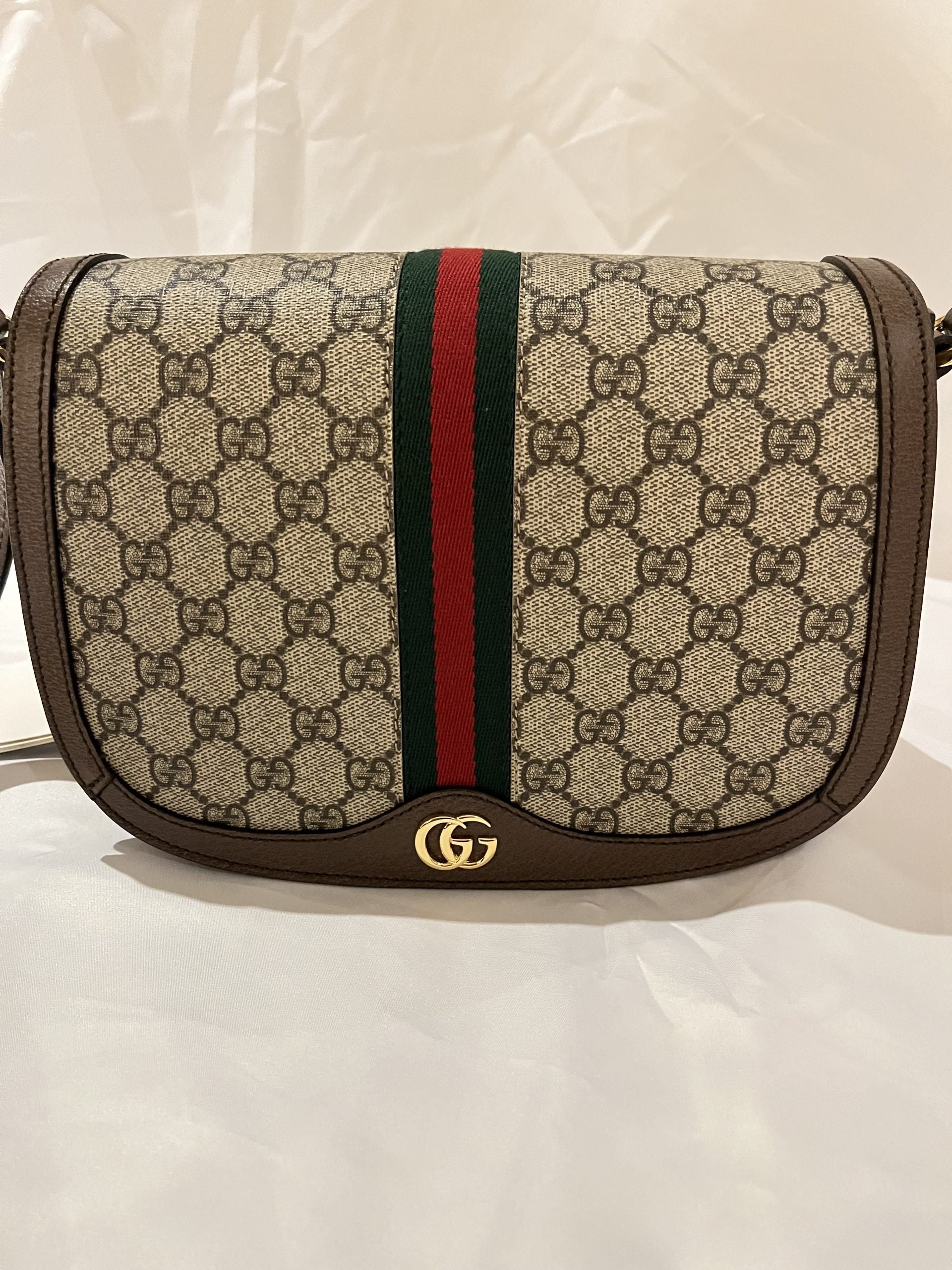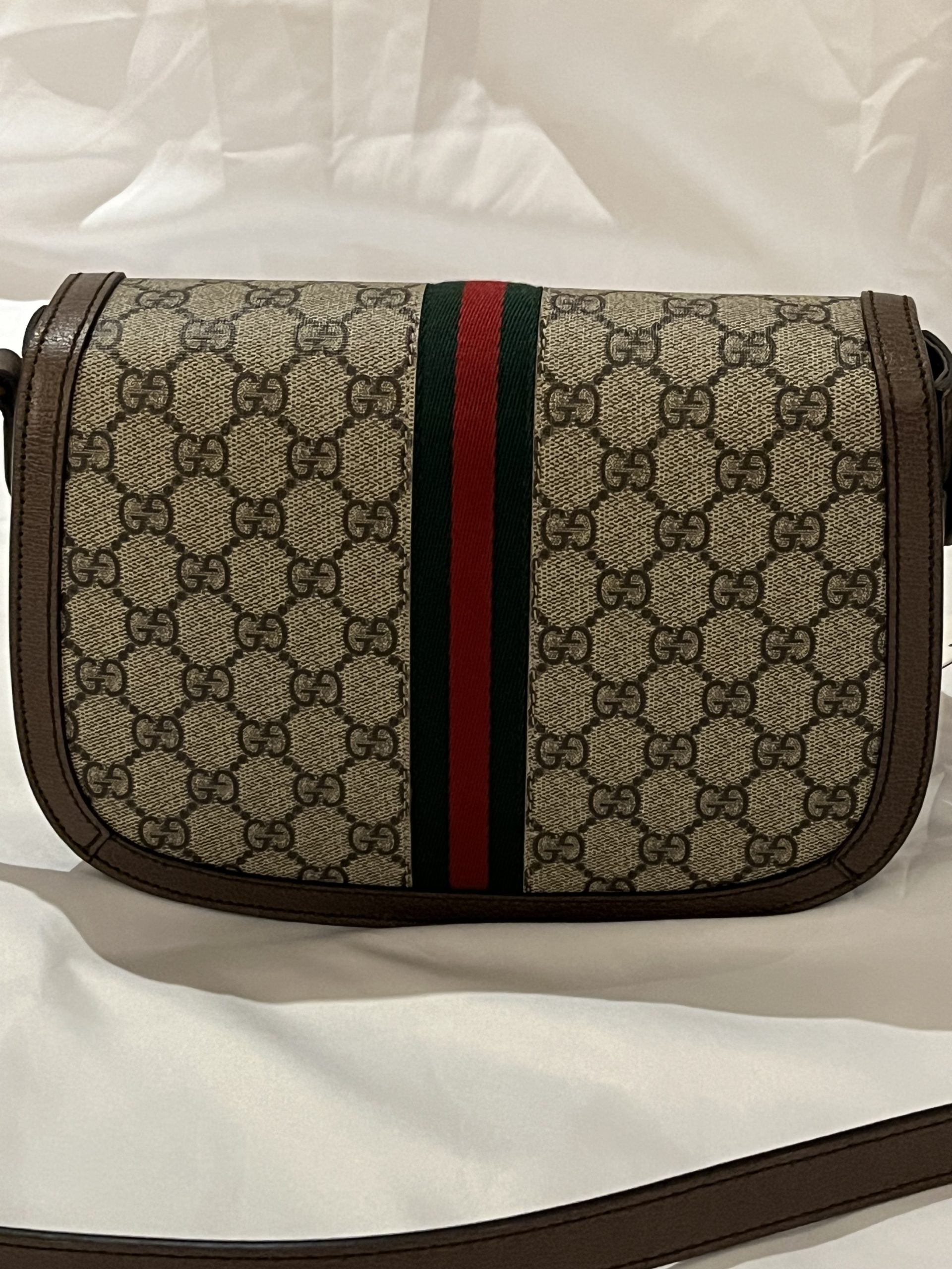 Brand new Gucci GG Ophidia Messenger Bag can be worn season after season. Crafted from the iconic GG Supreme Canvas, this bag is not only stylish but very recognizable with its vibrant red and green stripe, it is a timeless piece from the House's equestrian roots!