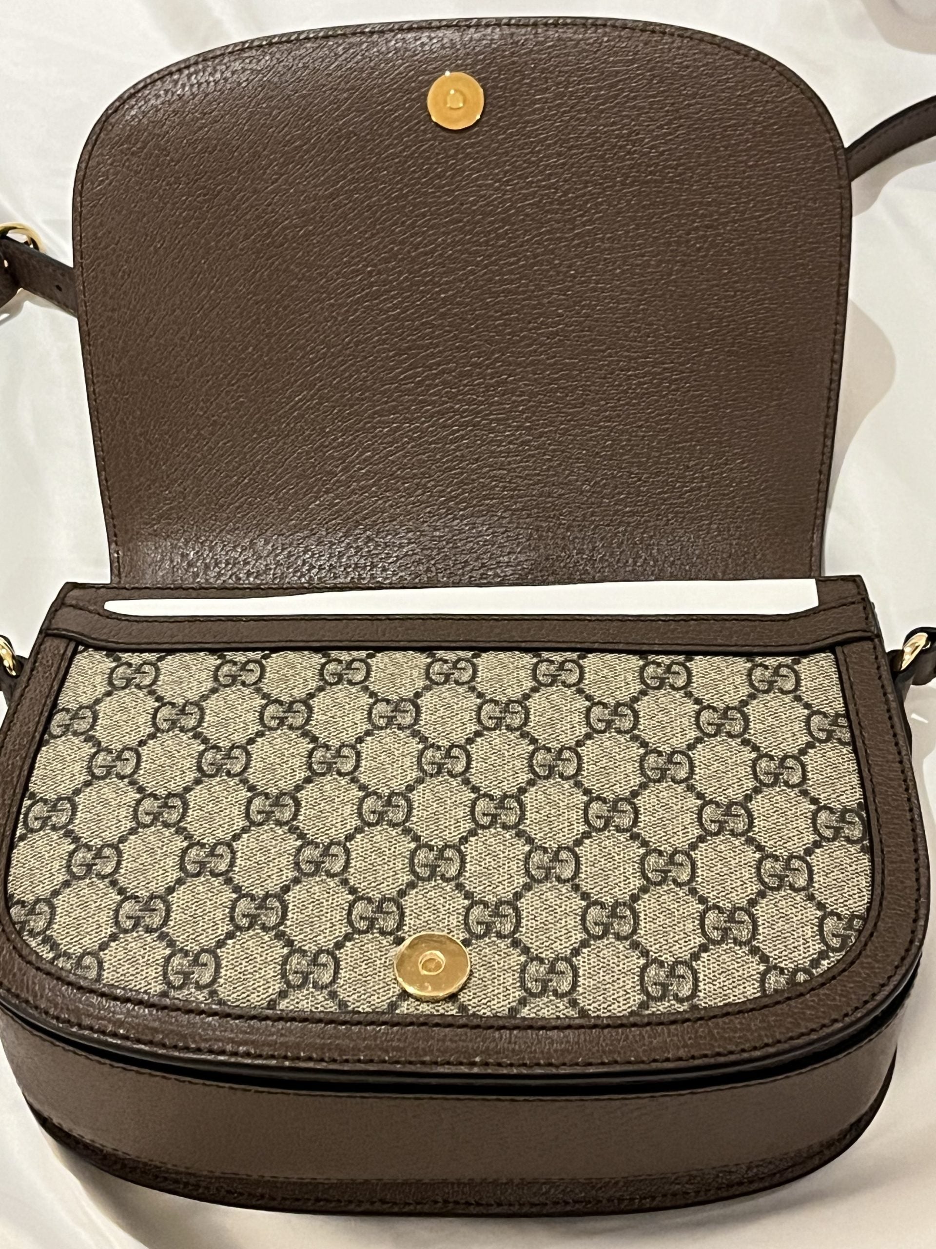 Gucci GG Medium Ophidia Bag in Beige and Ebony GG Supreme Canvas