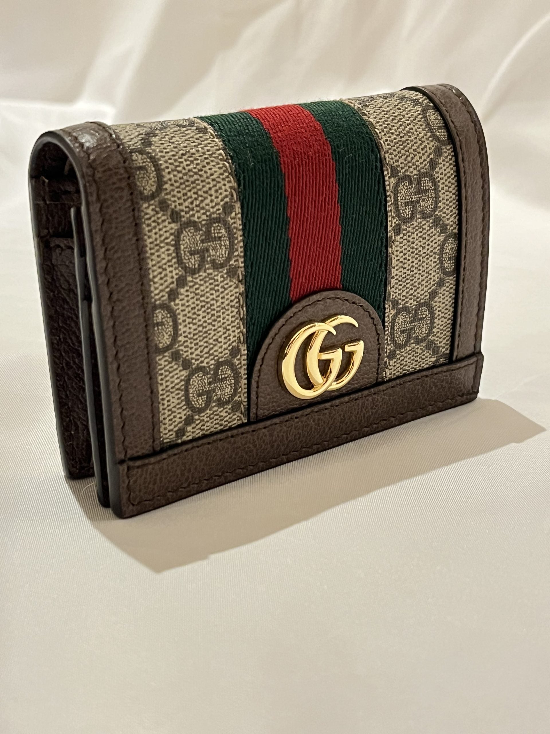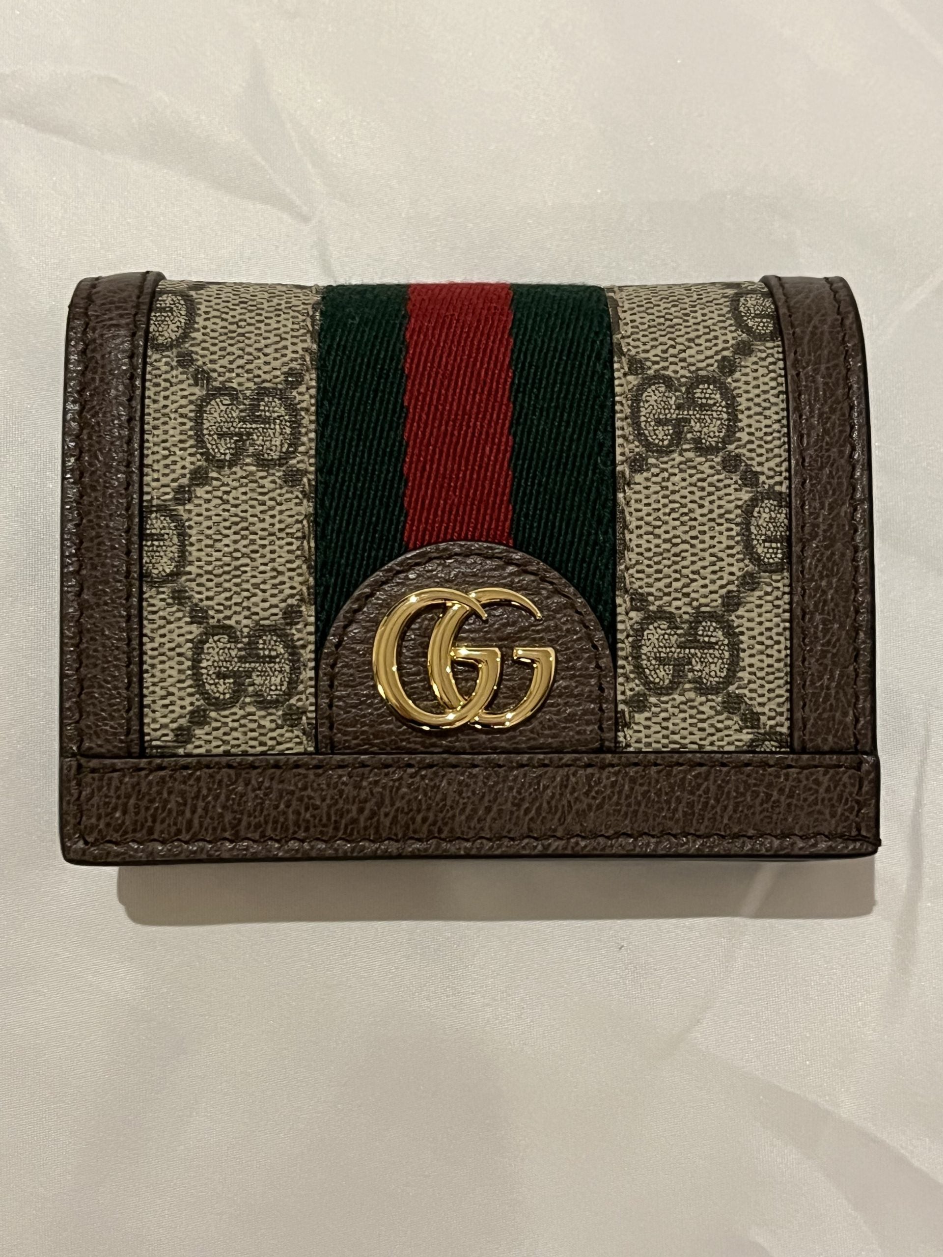Gucci GG Ophidia Card Case Wallet in Beige and Ebony