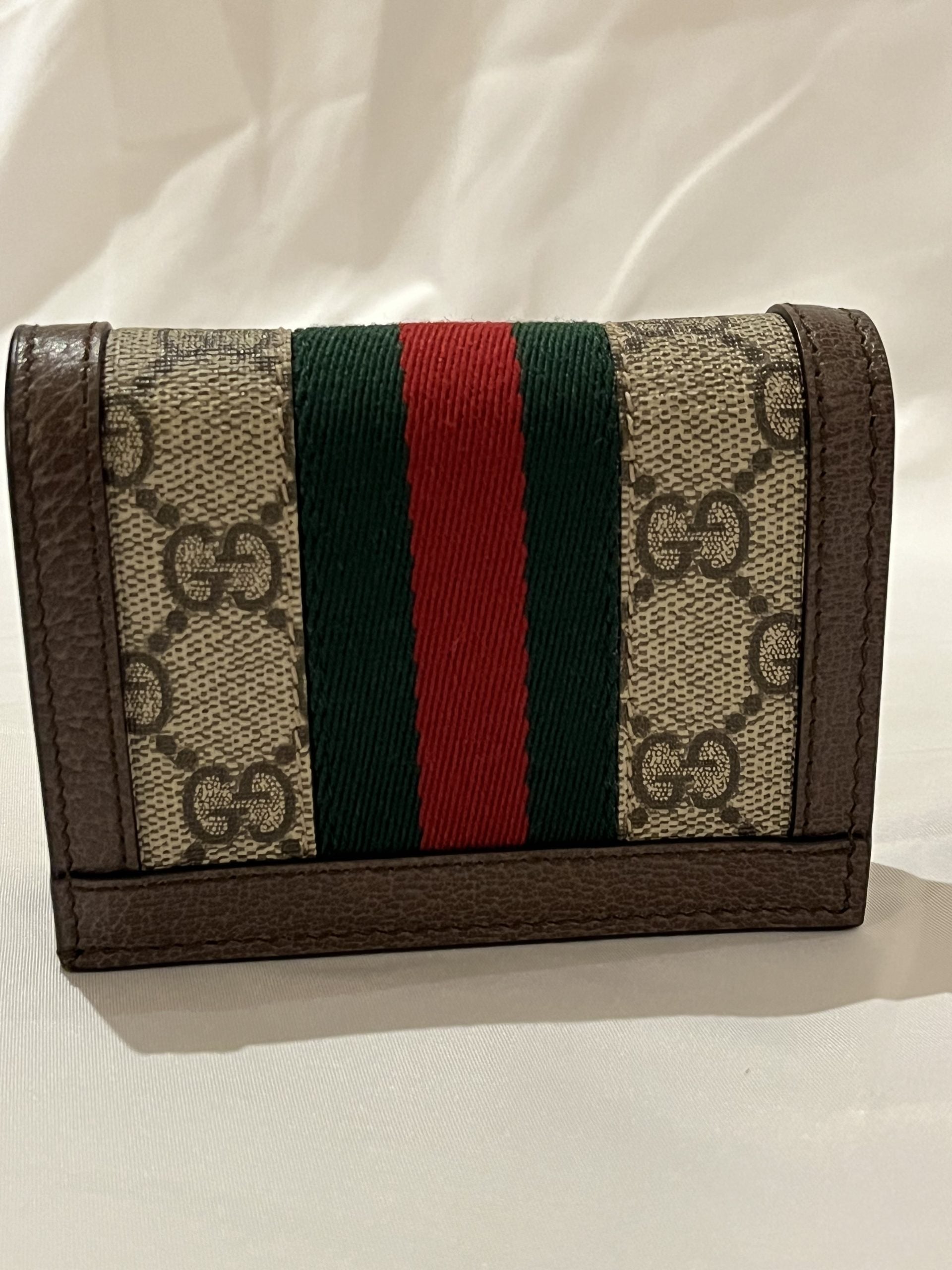 Gucci GG Ophidia Card Case Wallet in Beige and Ebony GG Supreme Canvas