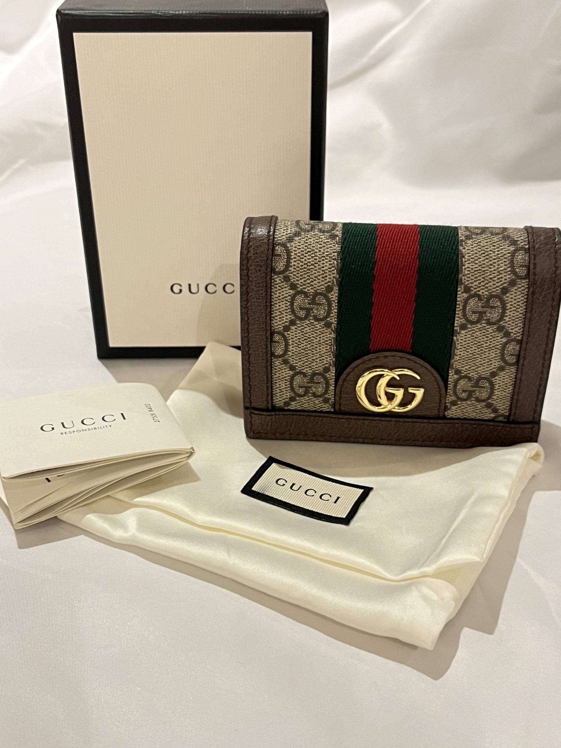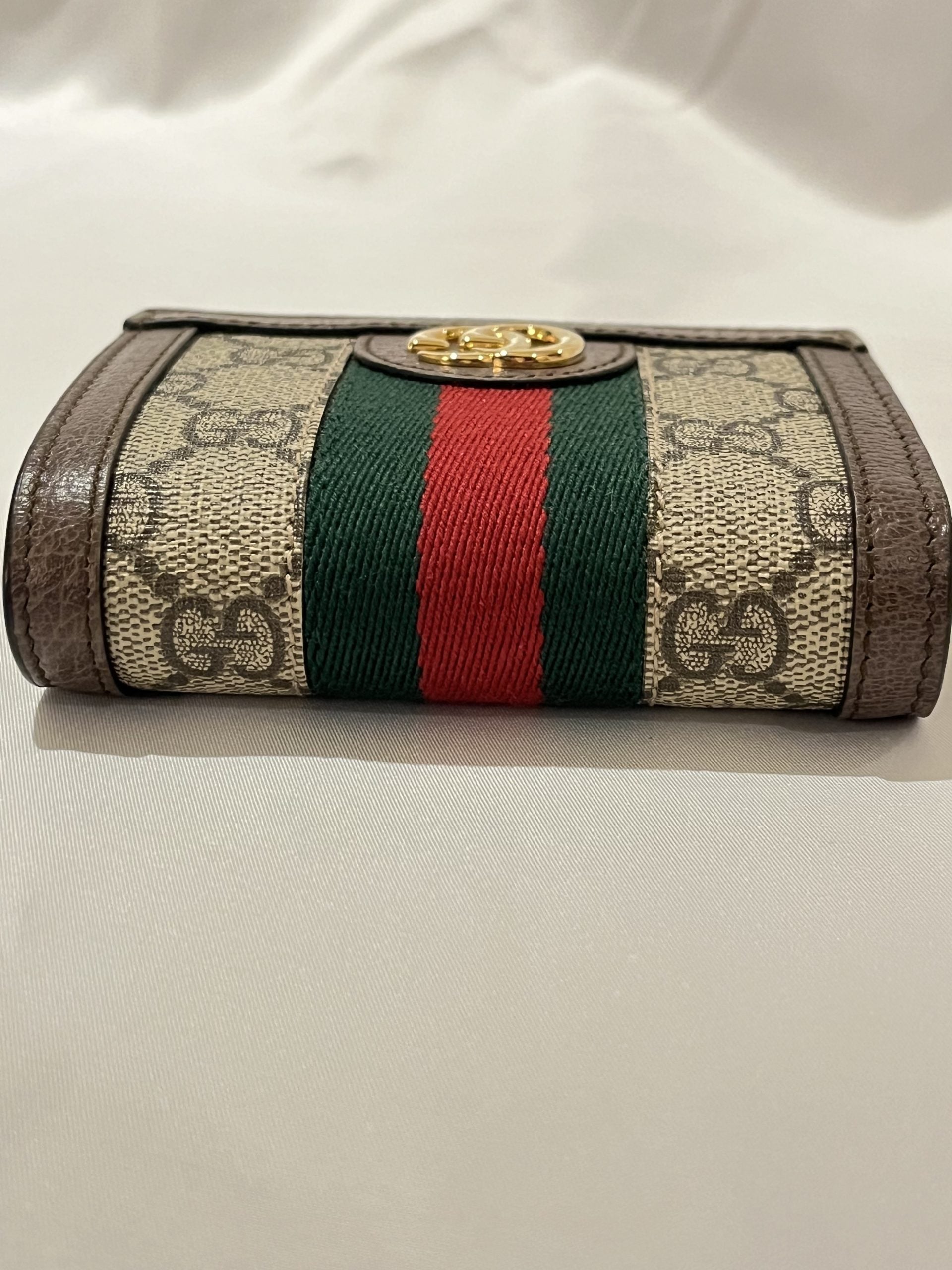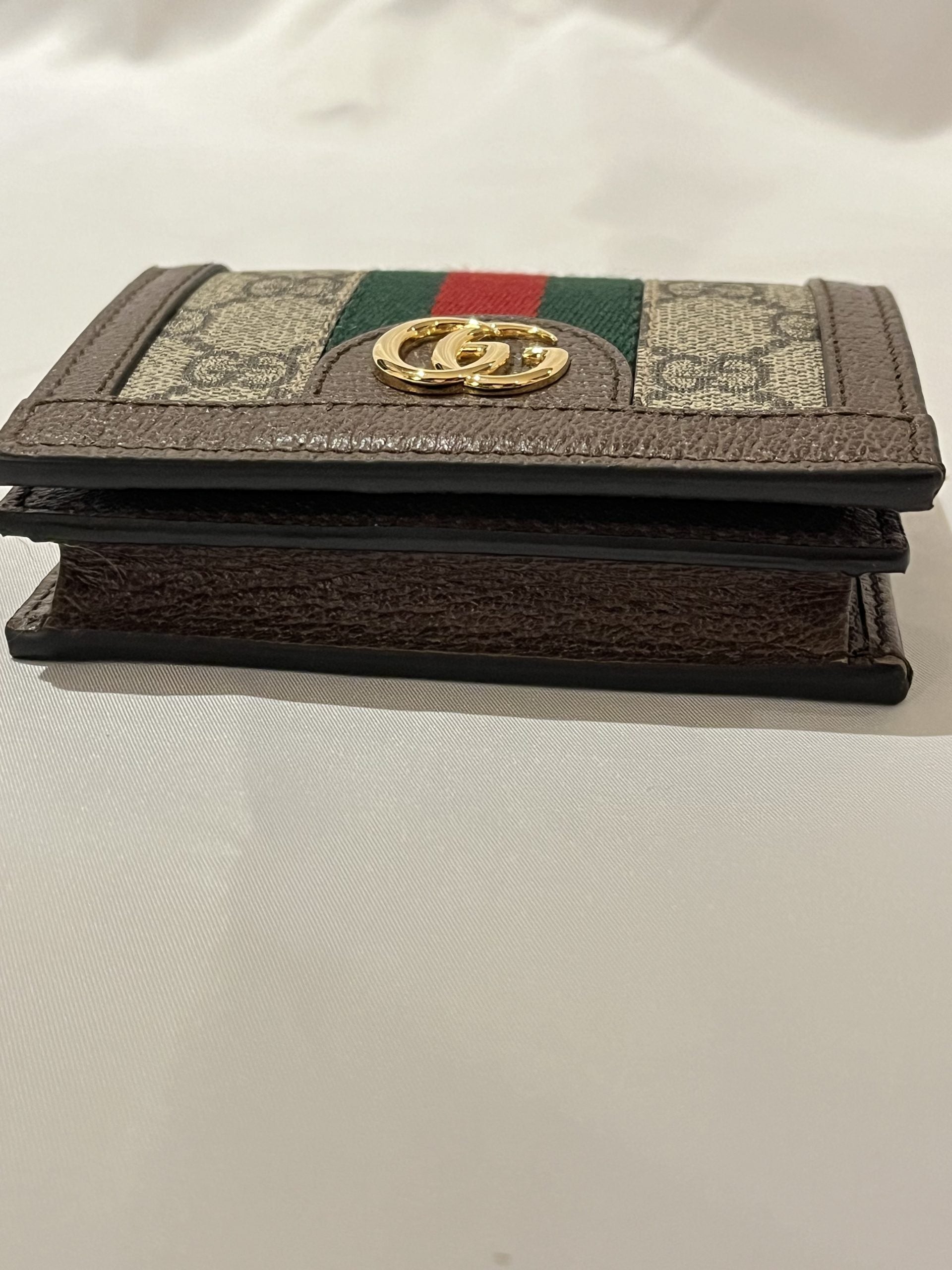 Brand new Gucci GG Ophidia Card Case Wallet. Crafted from the iconic GG Supreme Canvas, this wallet is not only stylish but very recognizable with its vibrant red and green stripe, it is a timeless piece from the House's equestrian roots!