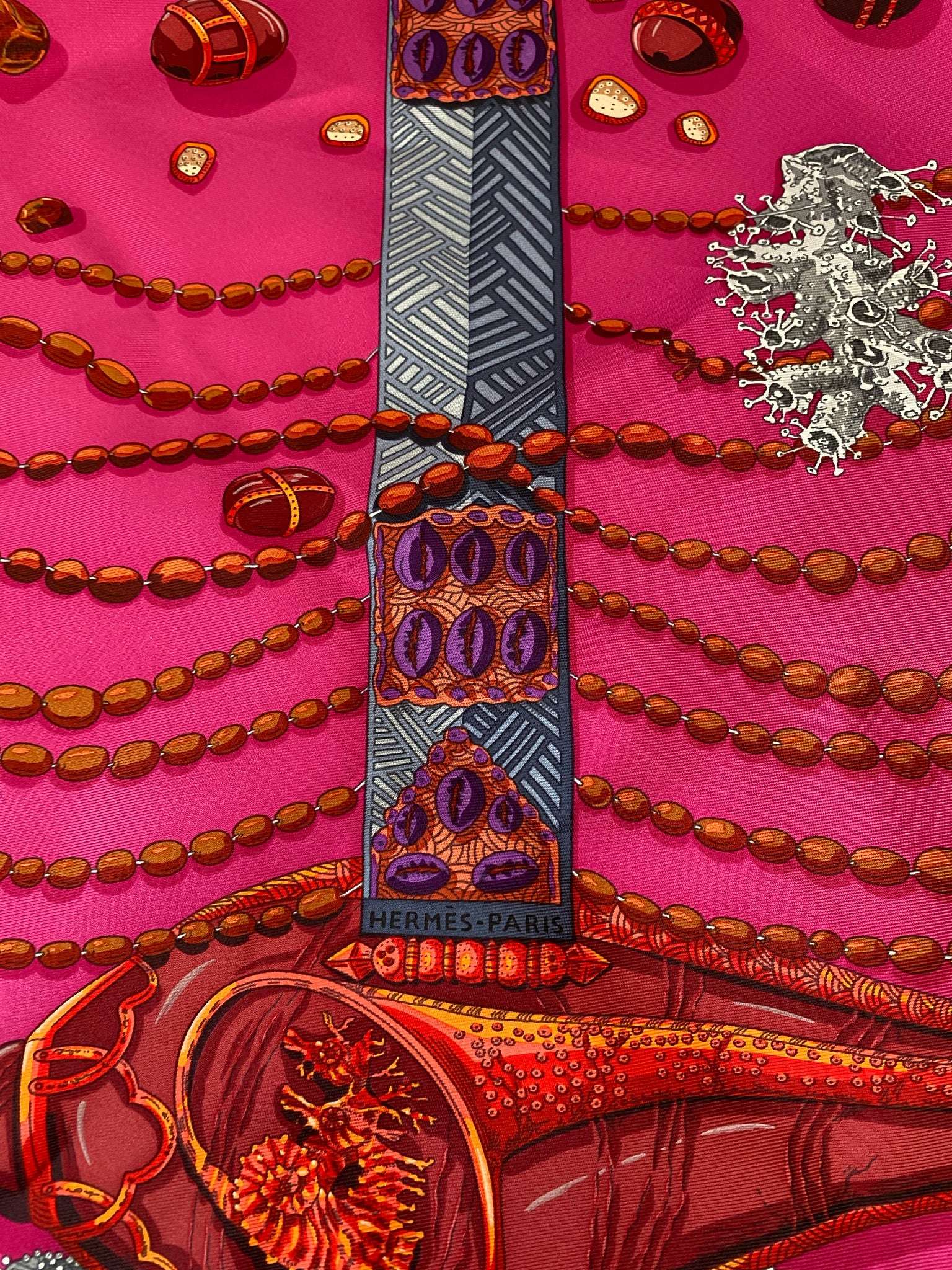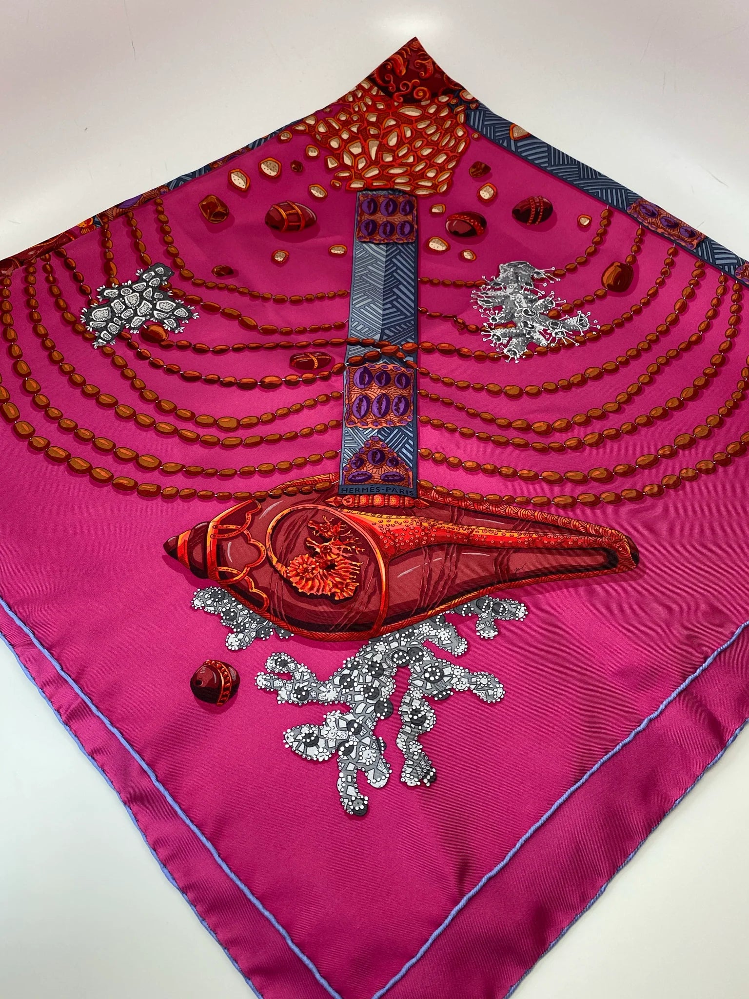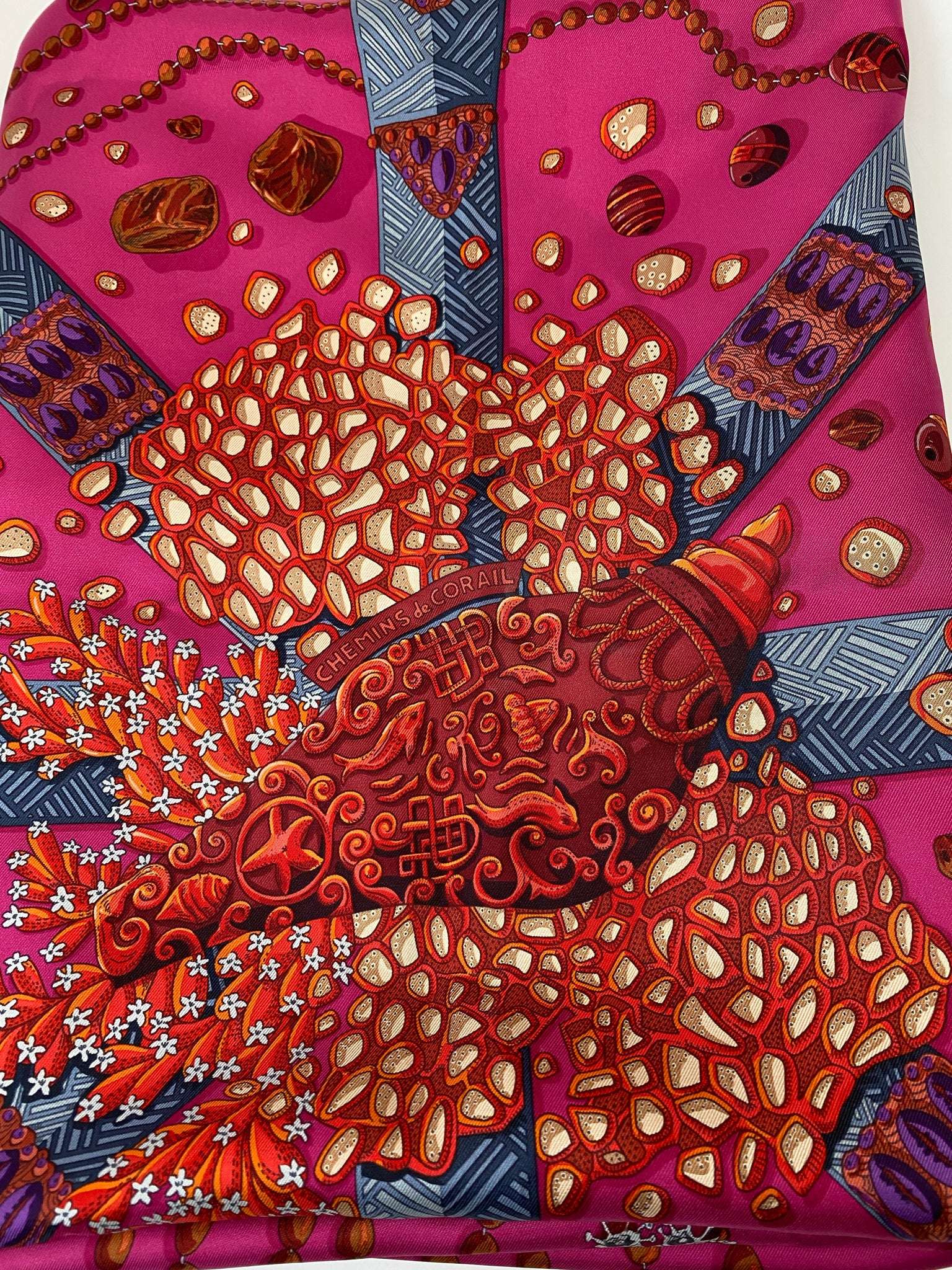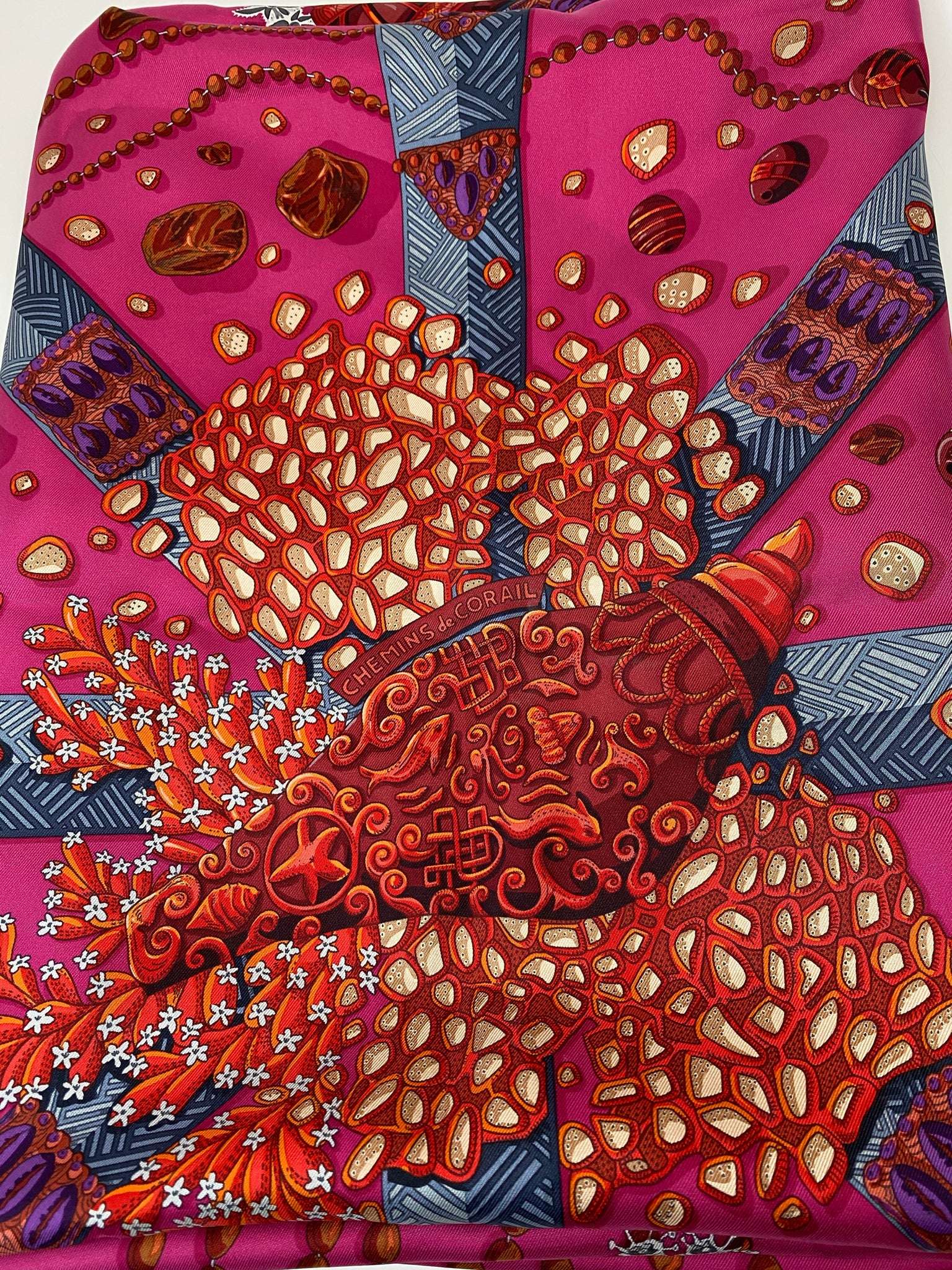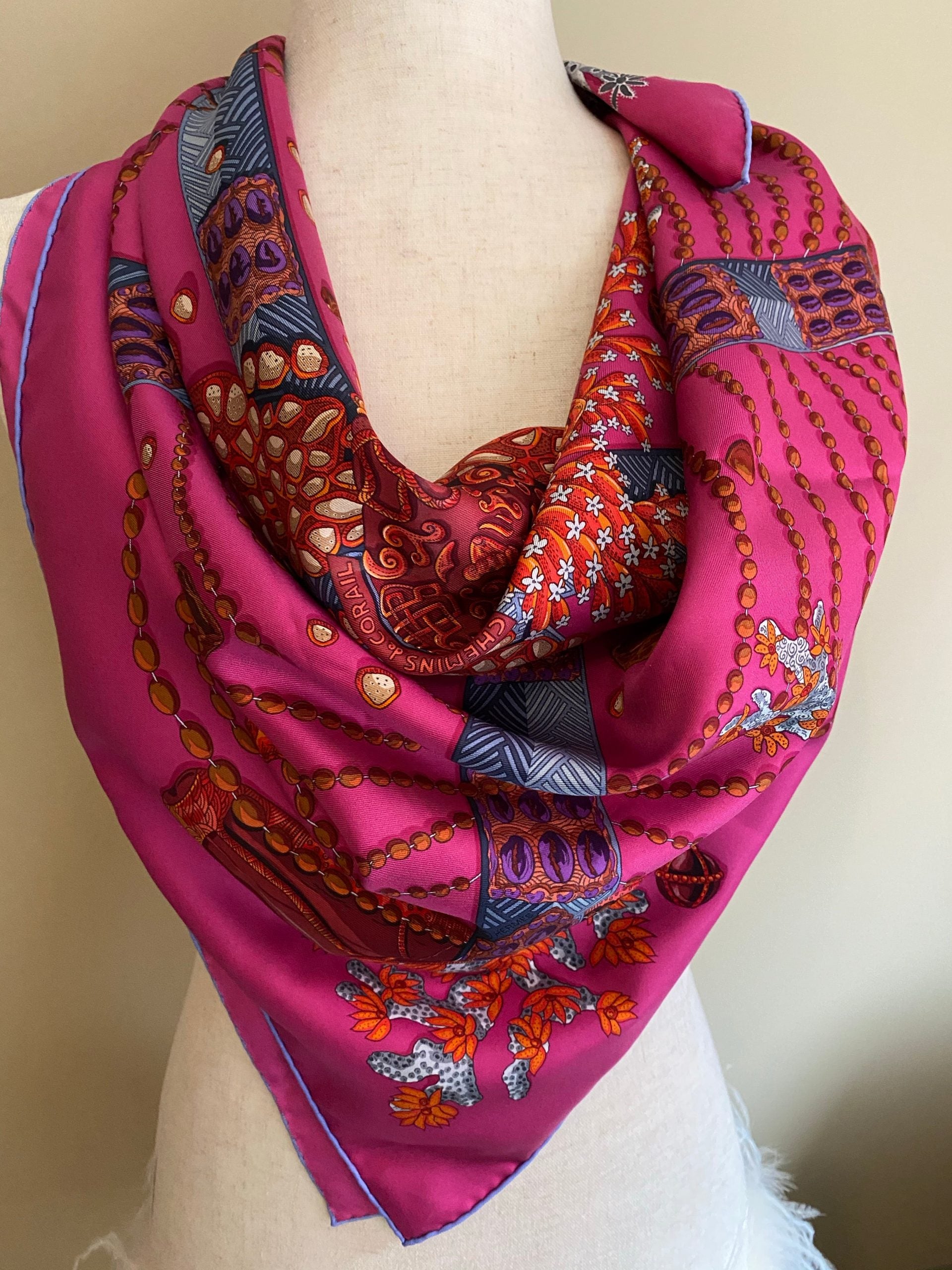 HERMES CHEMINS DE CORAIL 100% SILK TWILL SCARF