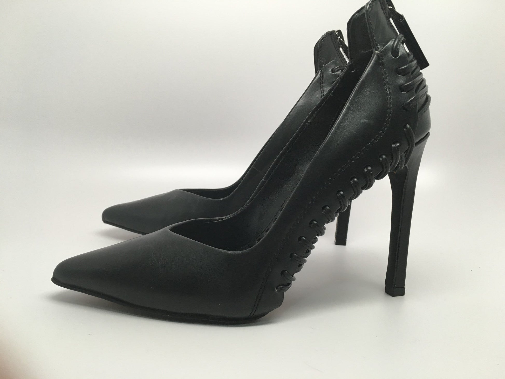 Details: A cool sexy elegant straps on soles gives this leather pumps a sophisticated look. Stylish, classy and fits every occasion. Cushioned insoles. 4" (101mm) heel Size 35 100mm pitch, Leather upper/lning and synthetic sole. By Dolce Vita; imported.Share
