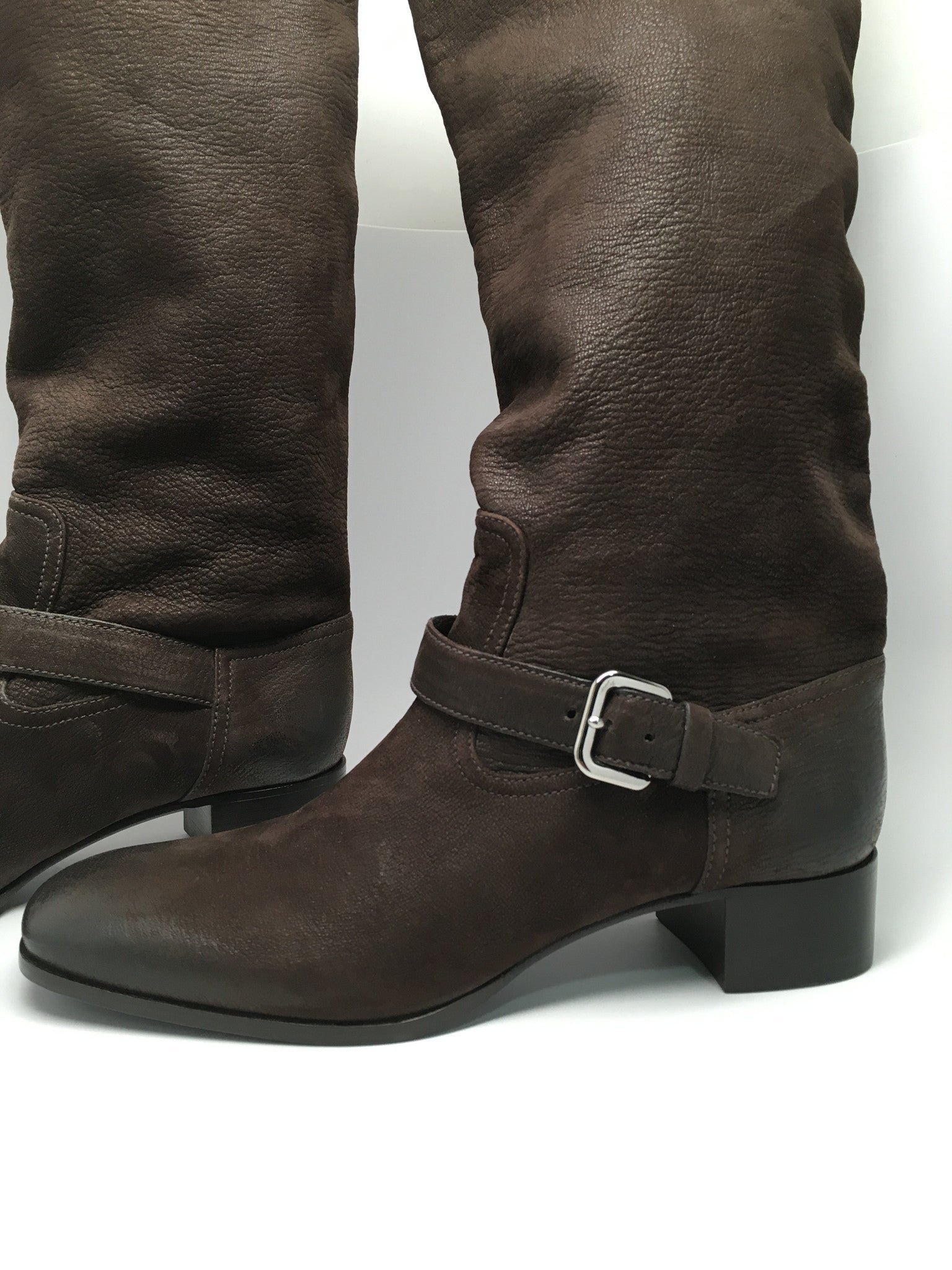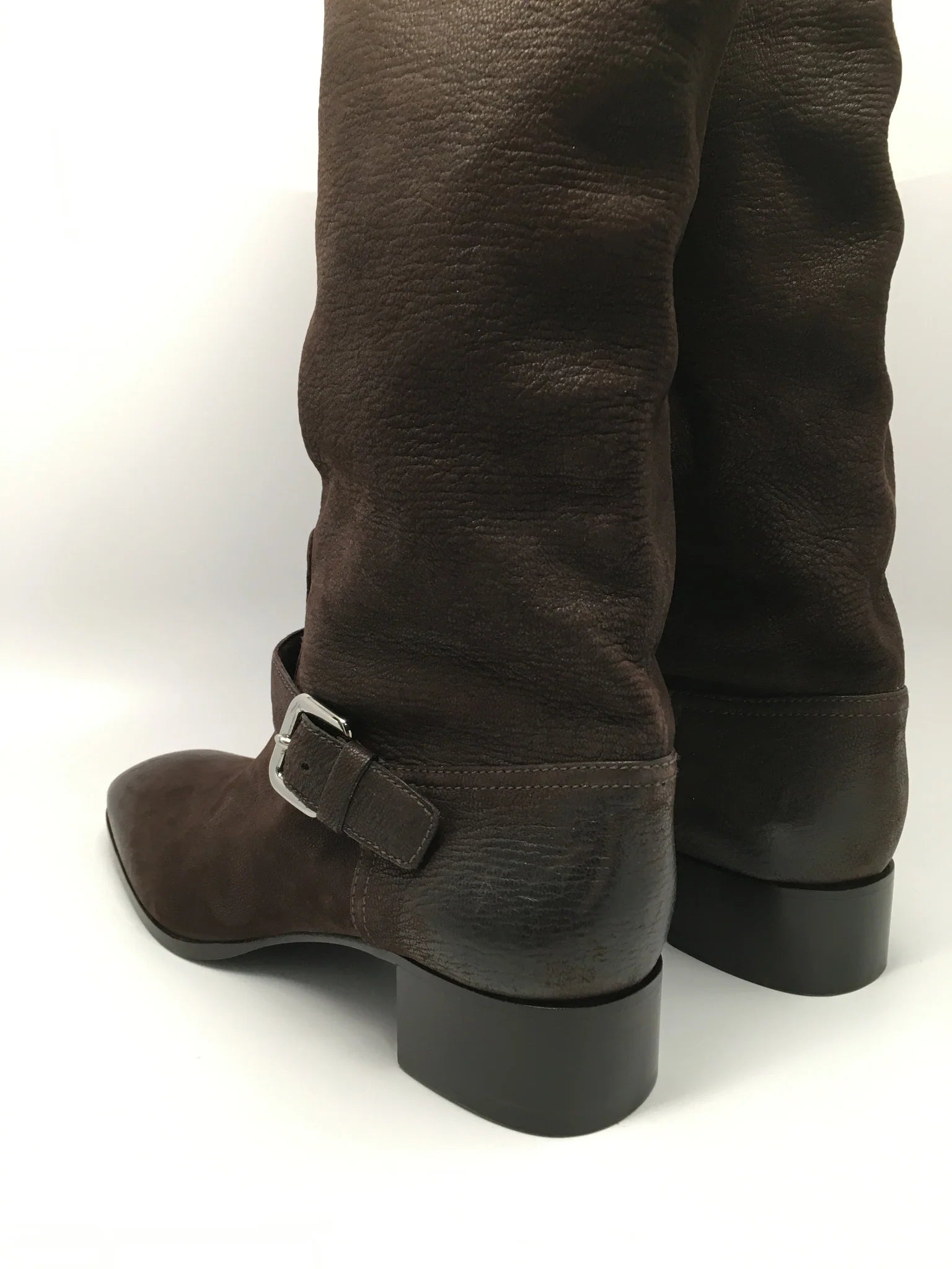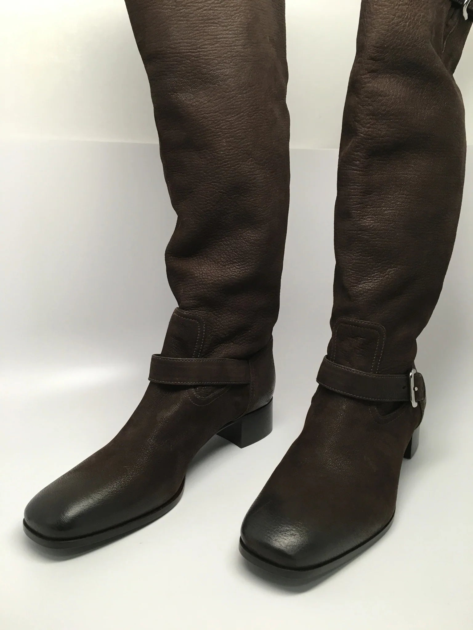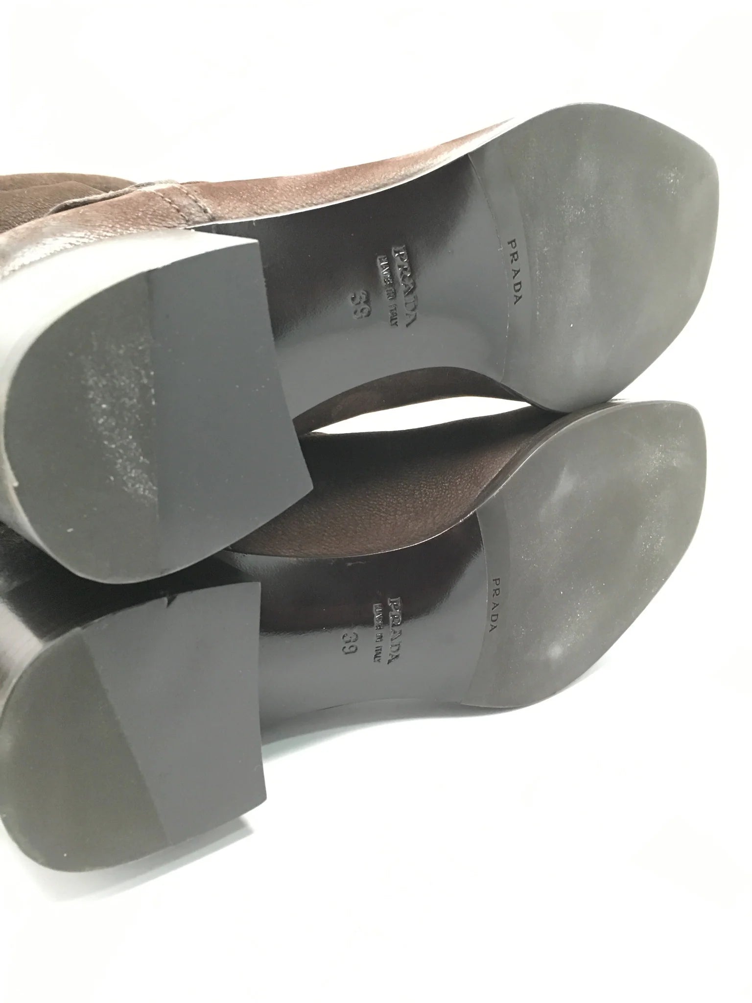 Details: Immaculate super soft brown leather made with fine fine detail. Comfortable wear with extra padding and classic riding boot look. 1 1/2" heel (size 39) 18" shaft, 15" calf circumference. Leather upper/leather cotton lining/leather and wood/plastic sole. These are a floor model, comes with box, minor scuffs expected. 100% authentic guaranteed. ***Offers will not be accepted on eBay - only by direct website contact**** By Prada; made in ItalyShare