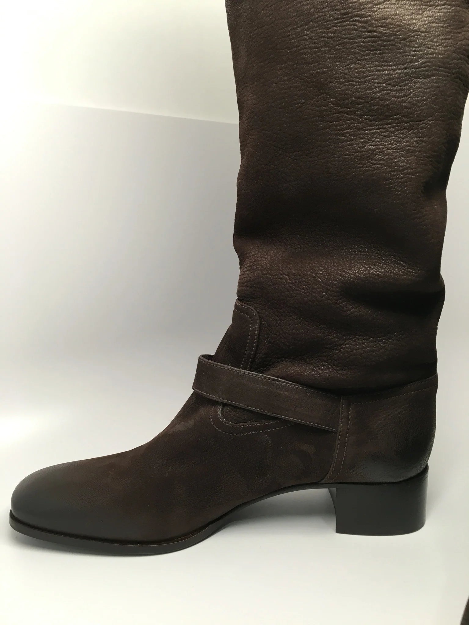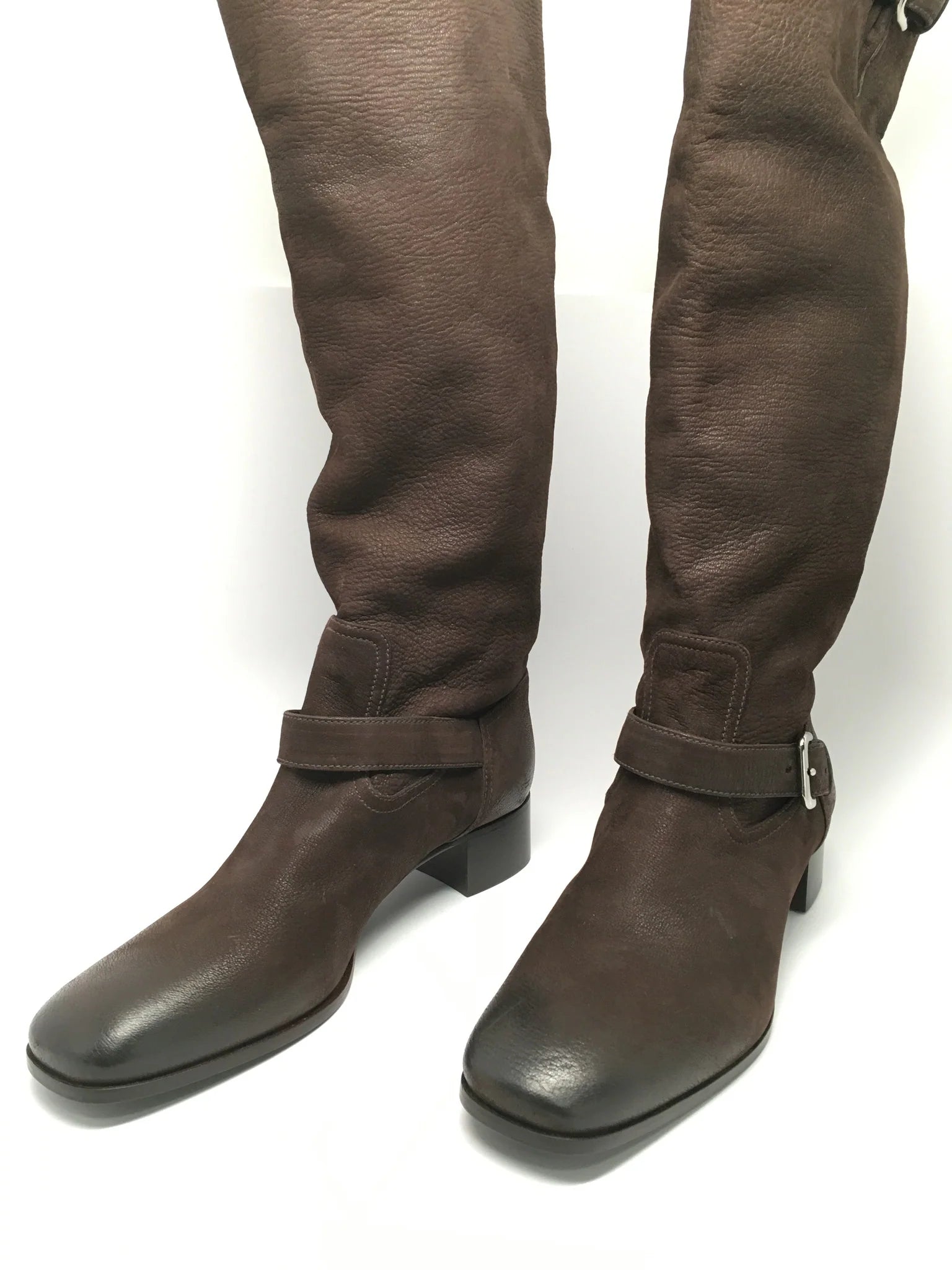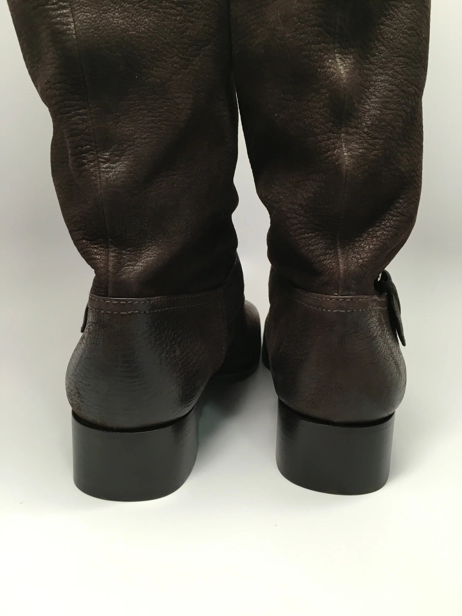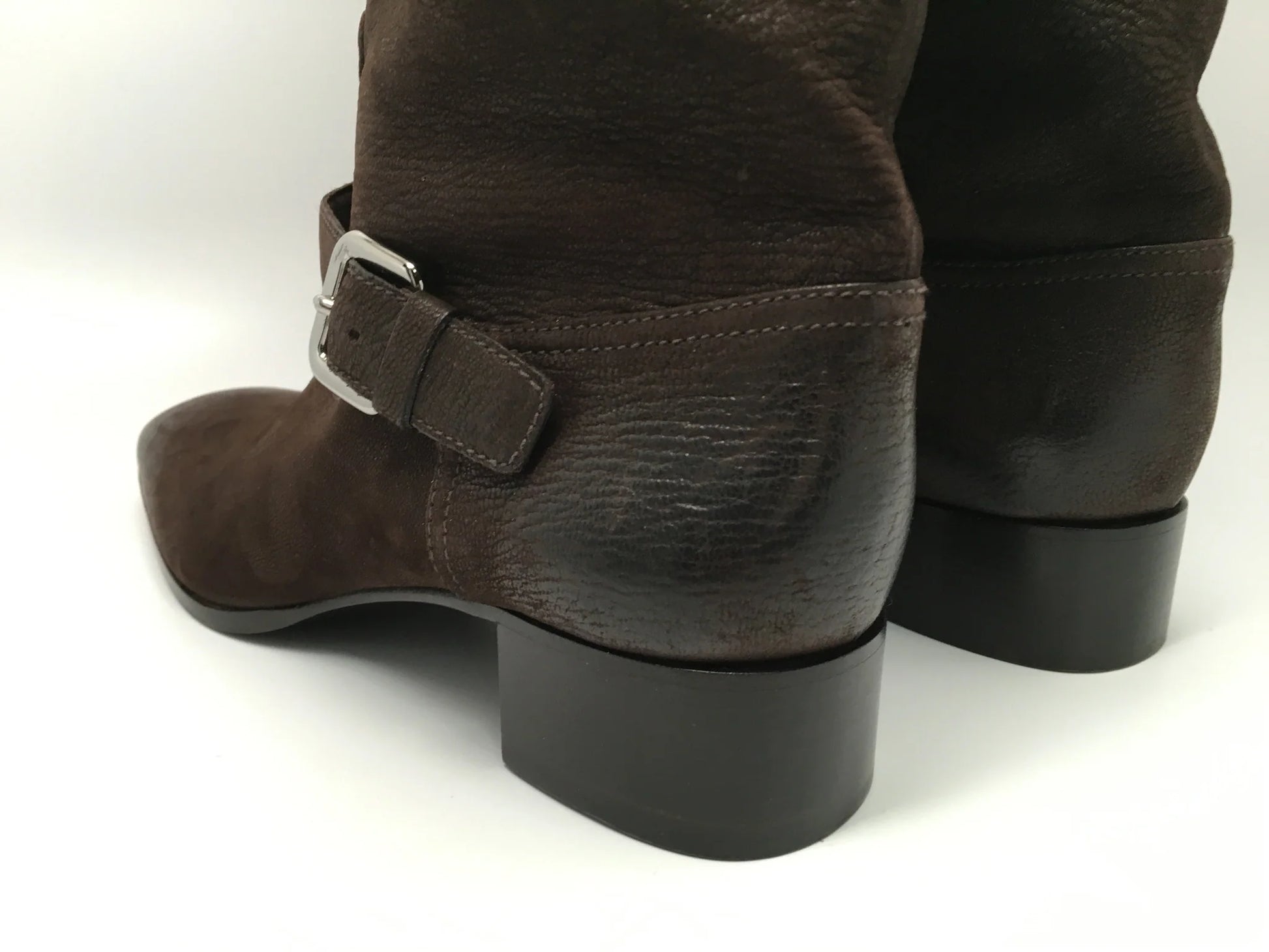 Details: Immaculate super soft brown leather made with fine fine detail. Comfortable wear with extra padding and classic riding boot look. 1 1/2" heel (size 39) 18" shaft, 15" calf circumference. Leather upper/leather cotton lining/leather and wood/plastic sole. These are a floor model, comes with box, minor scuffs expected. 100% authentic guaranteed. ***Offers will not be accepted on eBay - only by direct website contact**** By Prada; made in ItalyShare