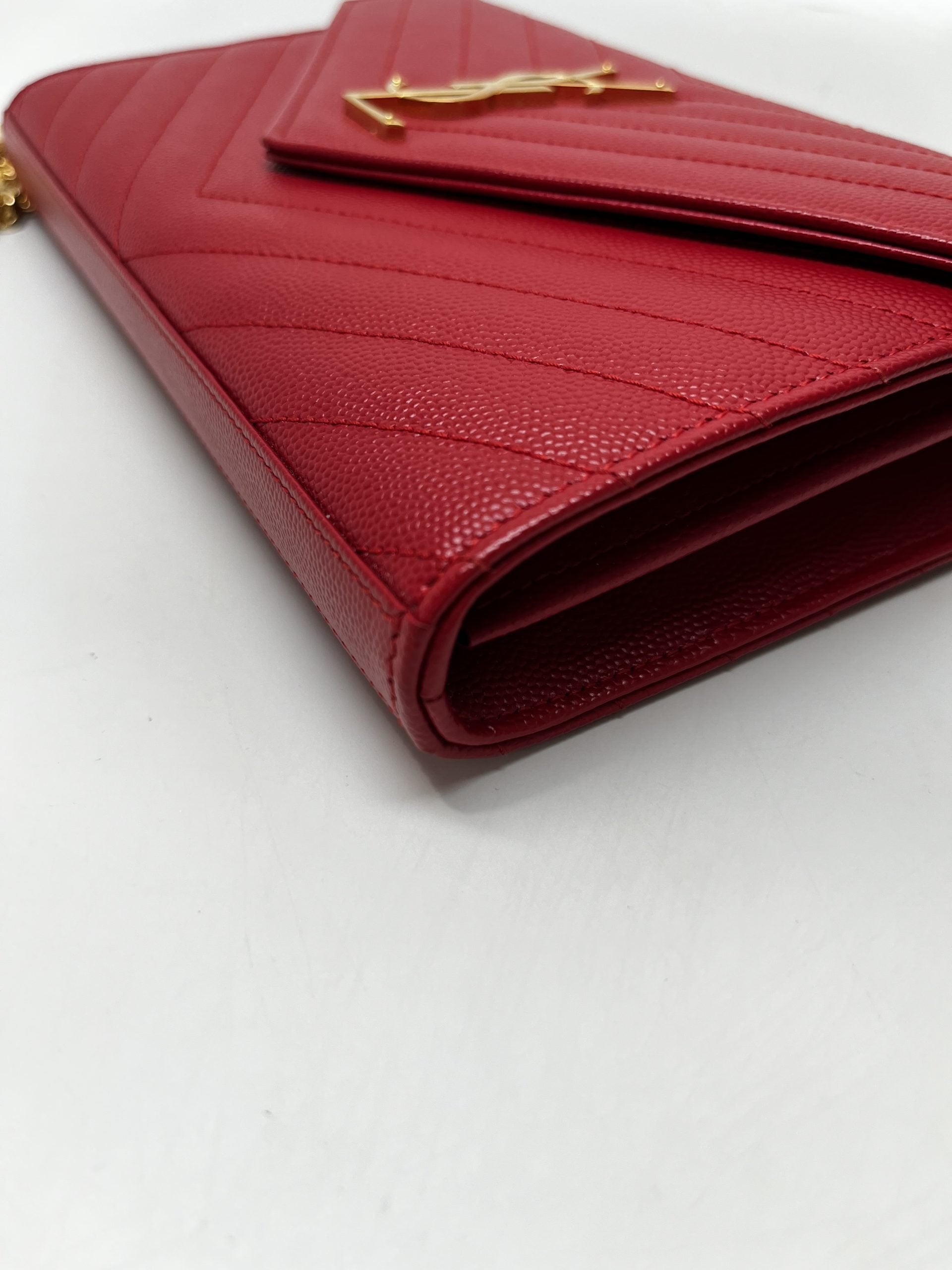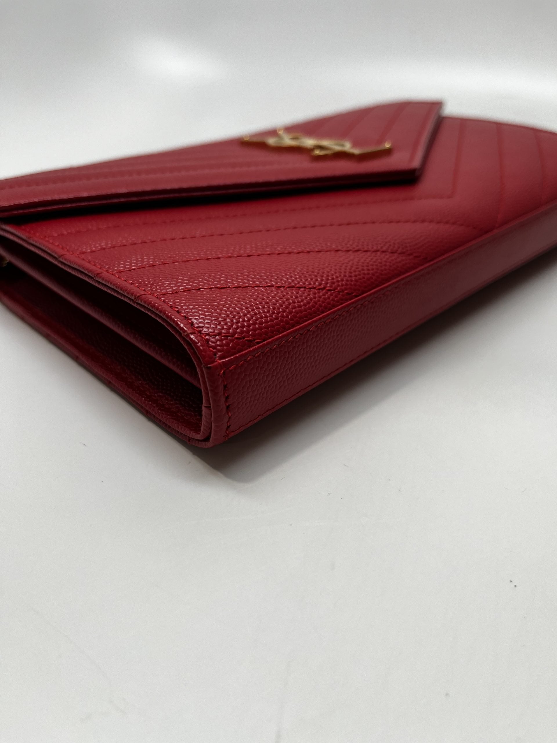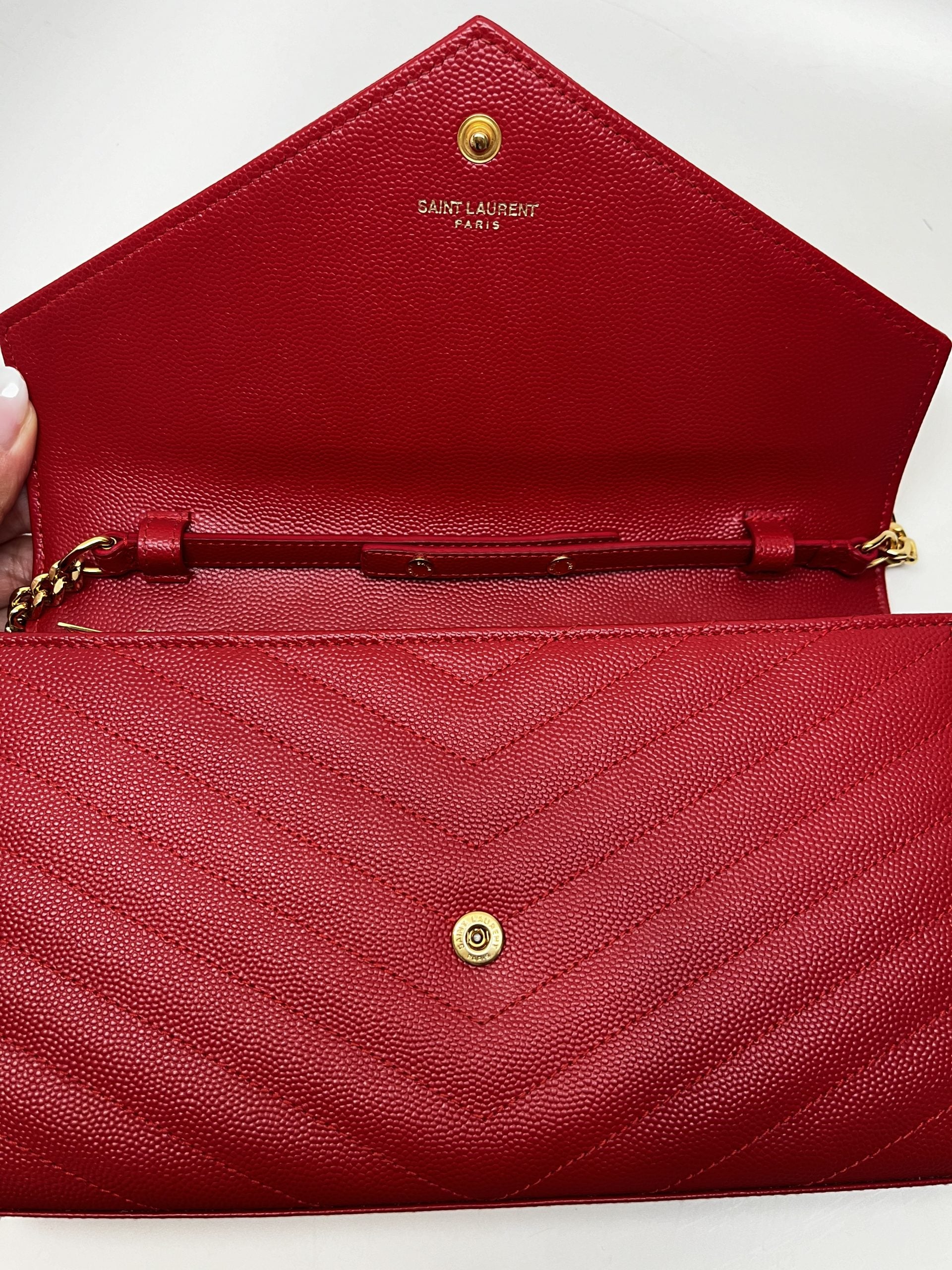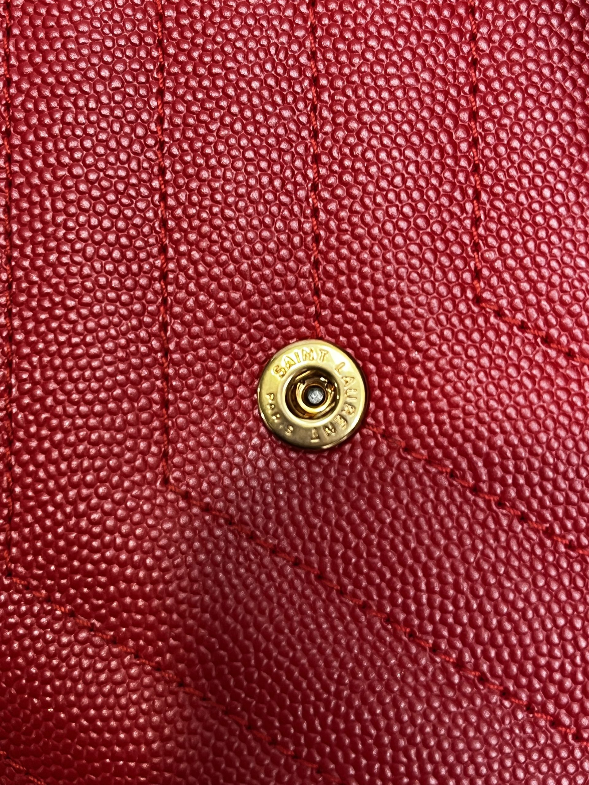 Saint Laurent Cassandre Classic Chain Wallet in Red