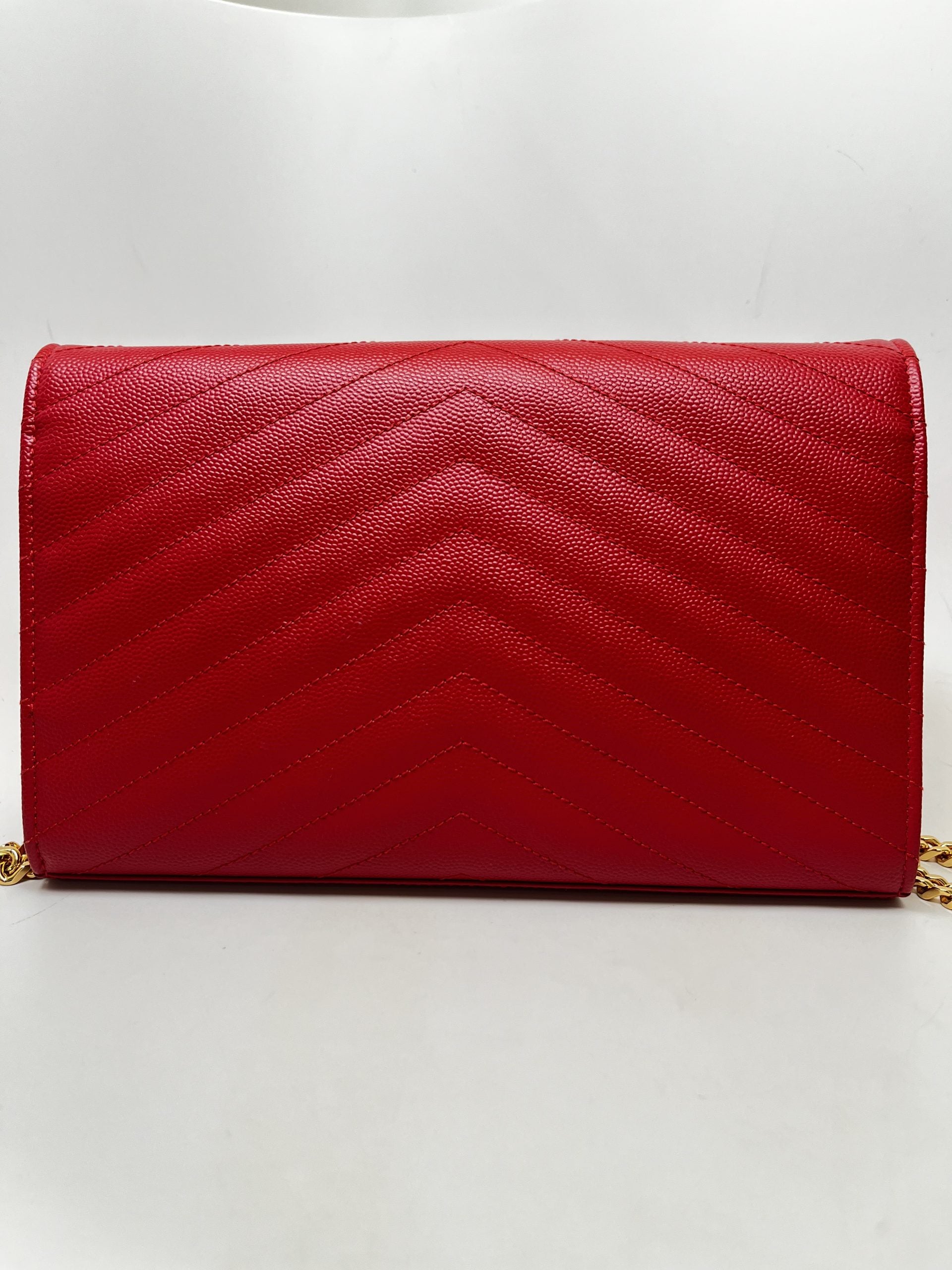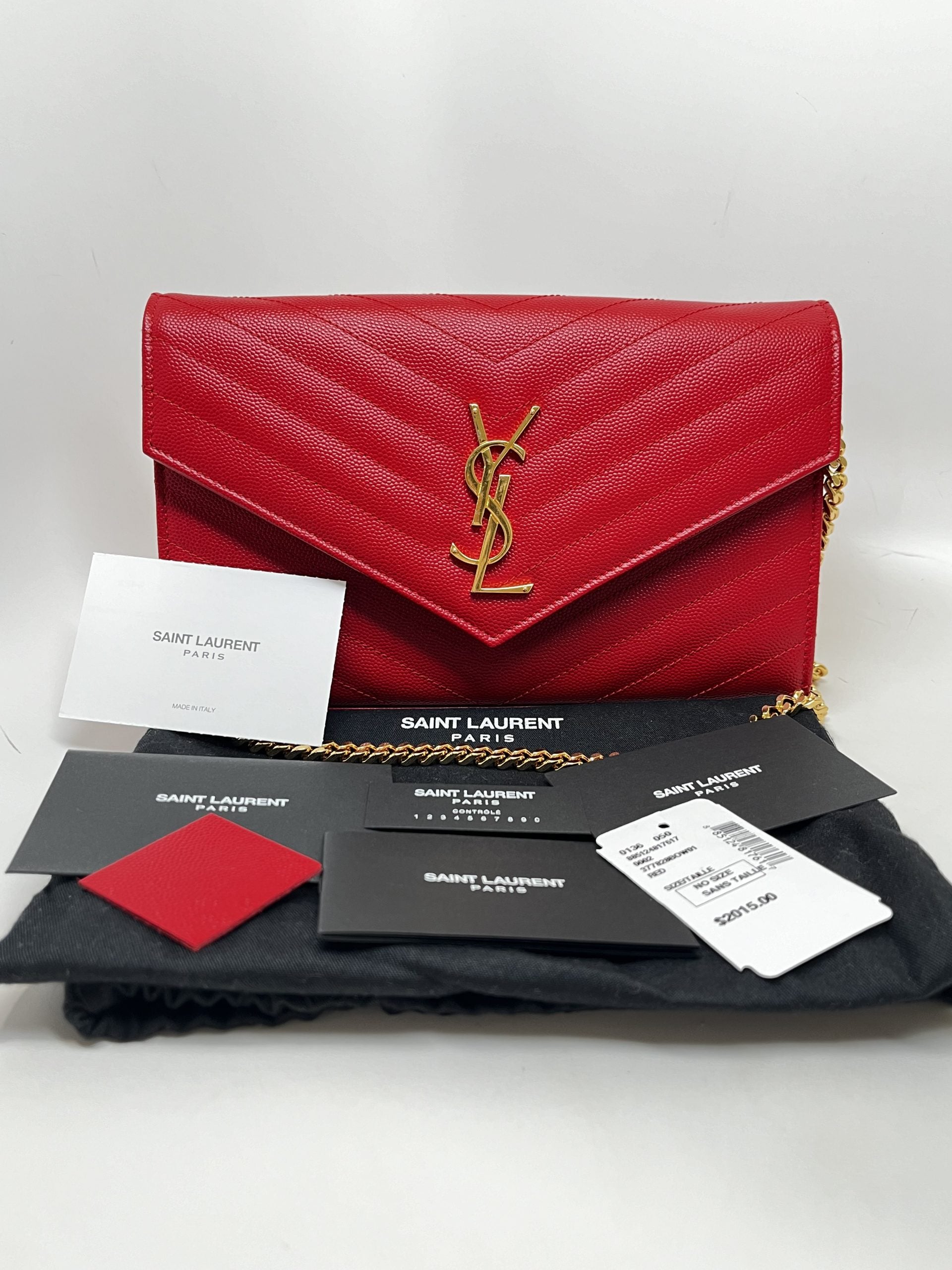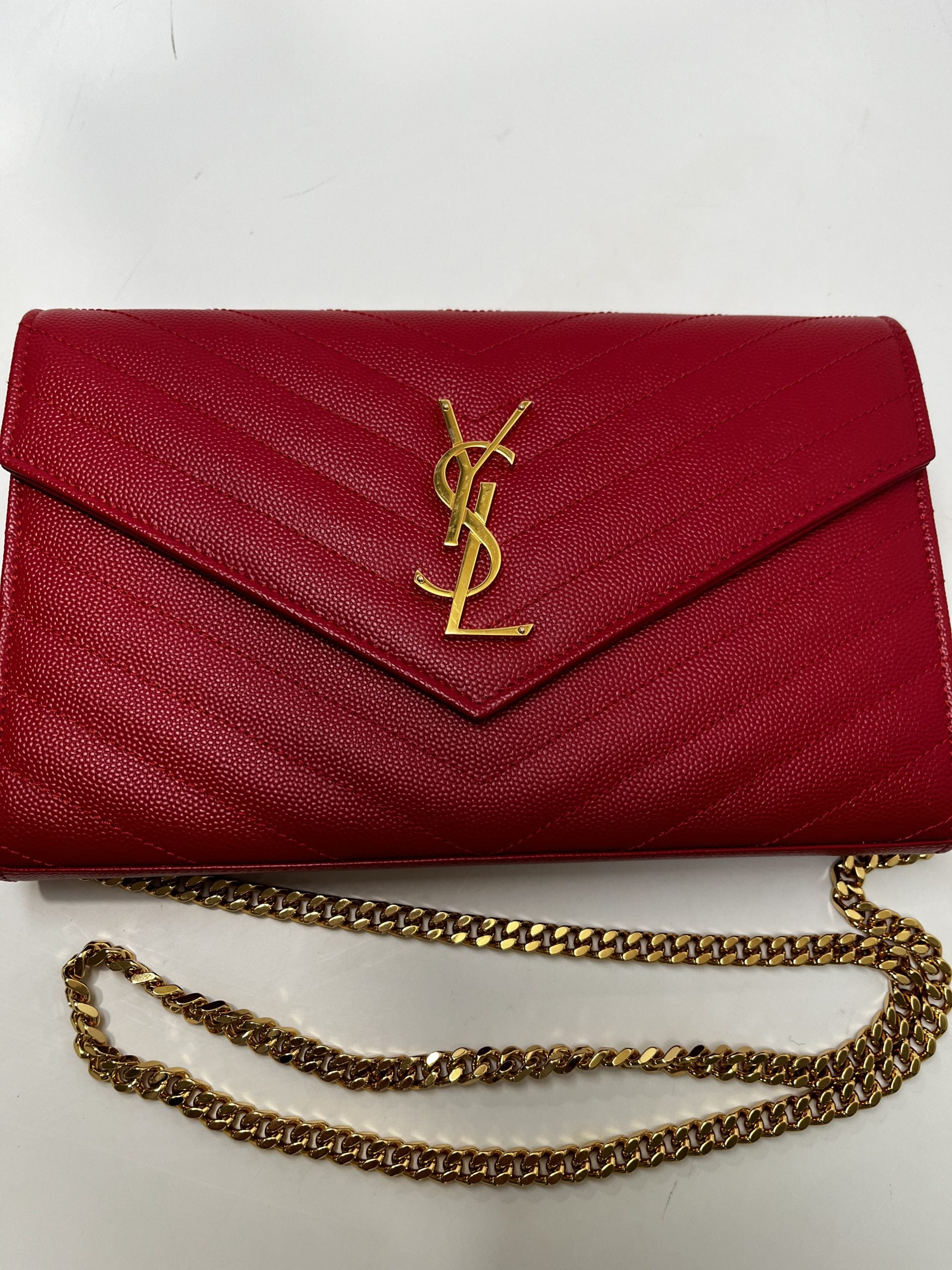 Saint Laurent Cassandre Classic Chain Wallet in Red