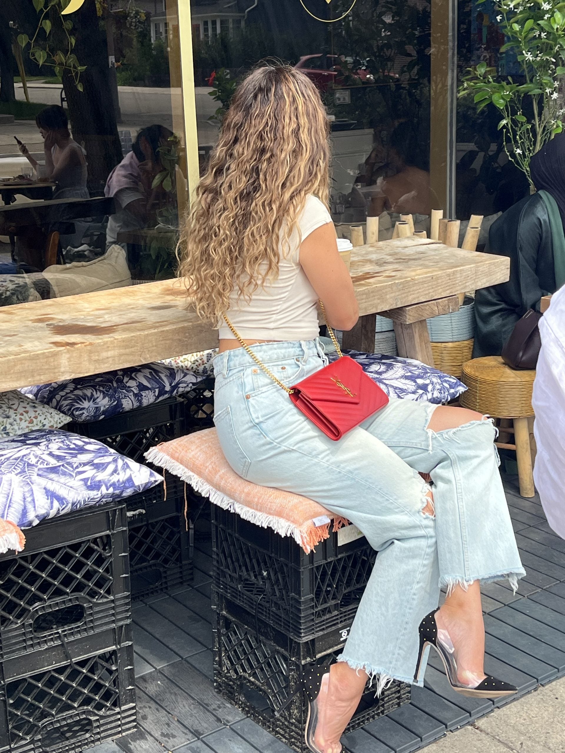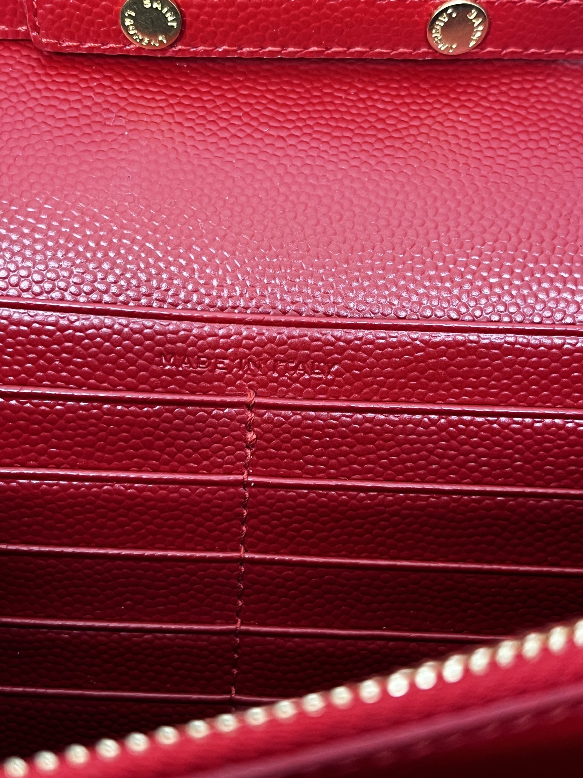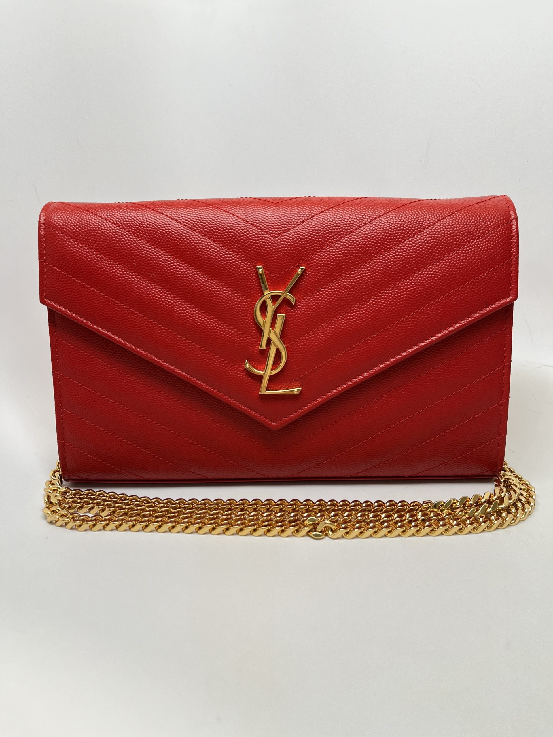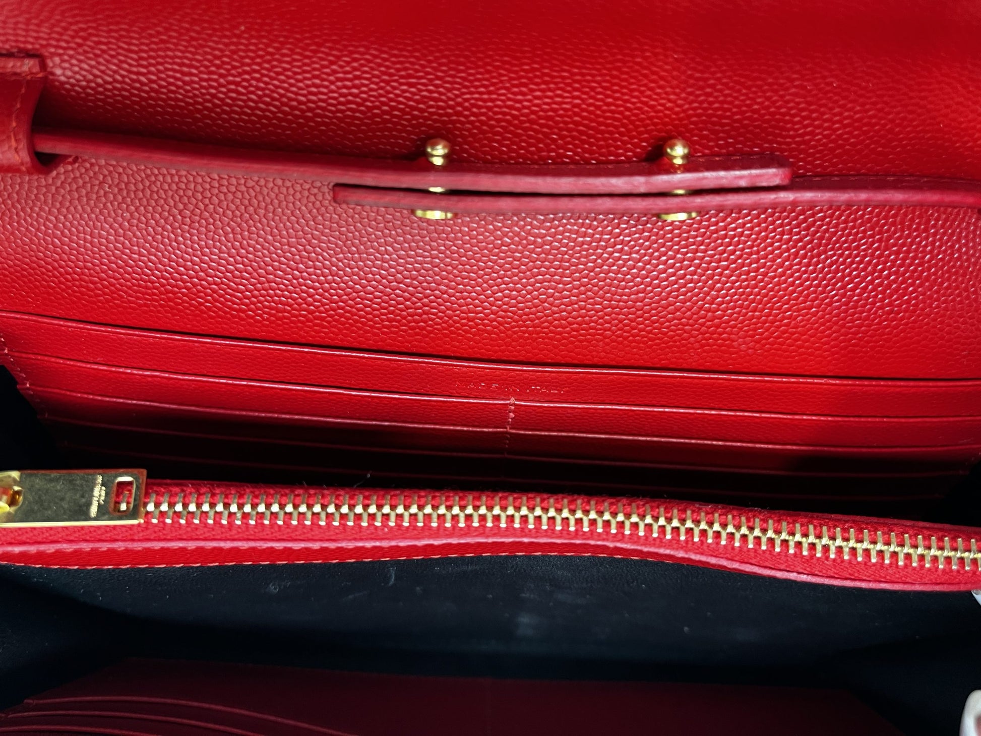 Saint Laurent Cassandre Classic Chain Wallet in Red