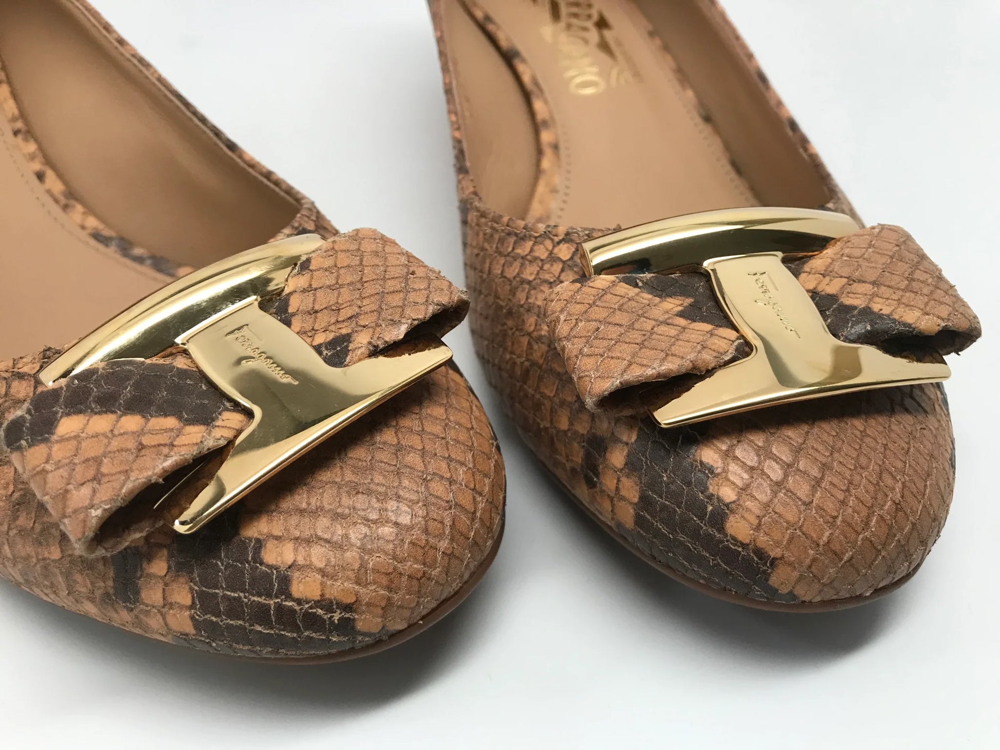 SALVATORE FERRAGAMO VARINA PYTHON EMBOSSED - SIZE 10
