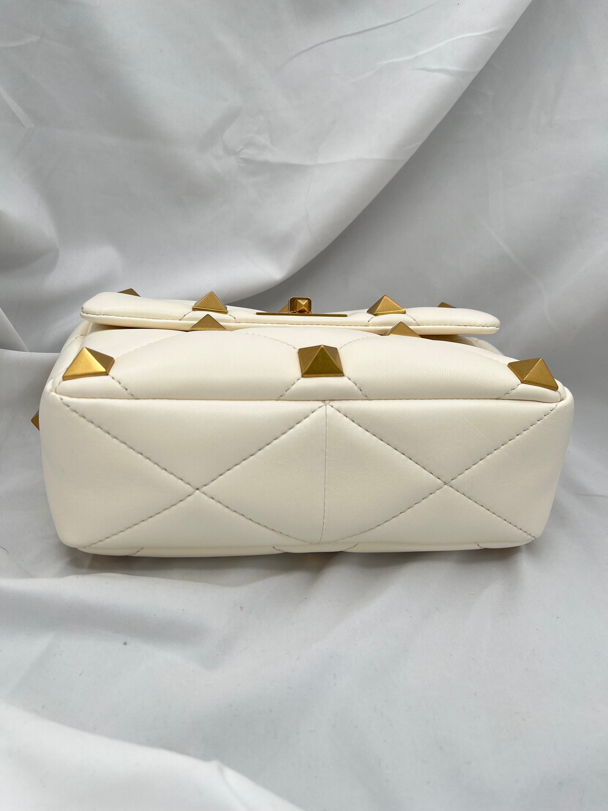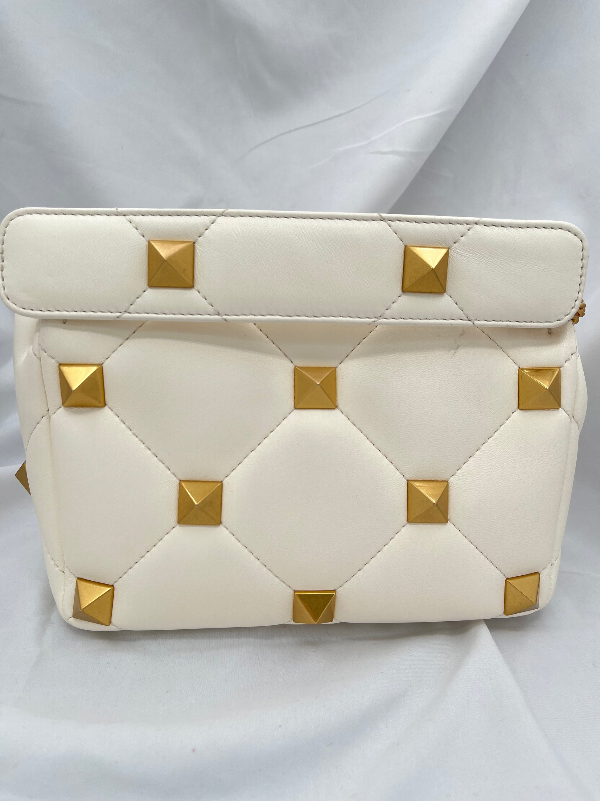 Valentino Garavani Roman Stud Foldover Top Tote Bag White